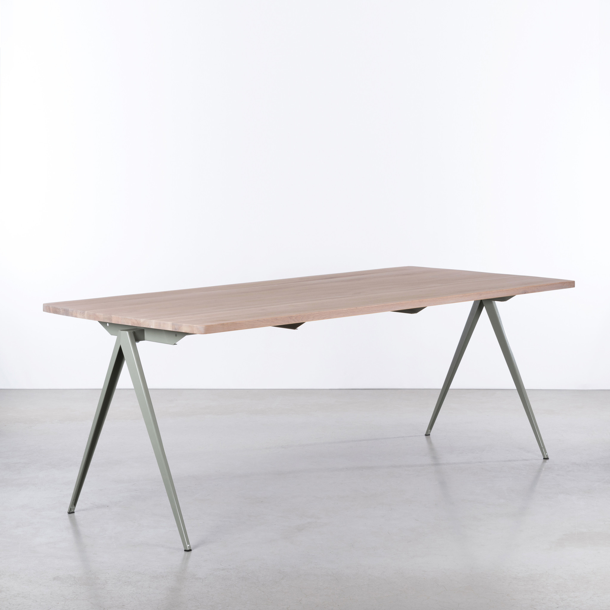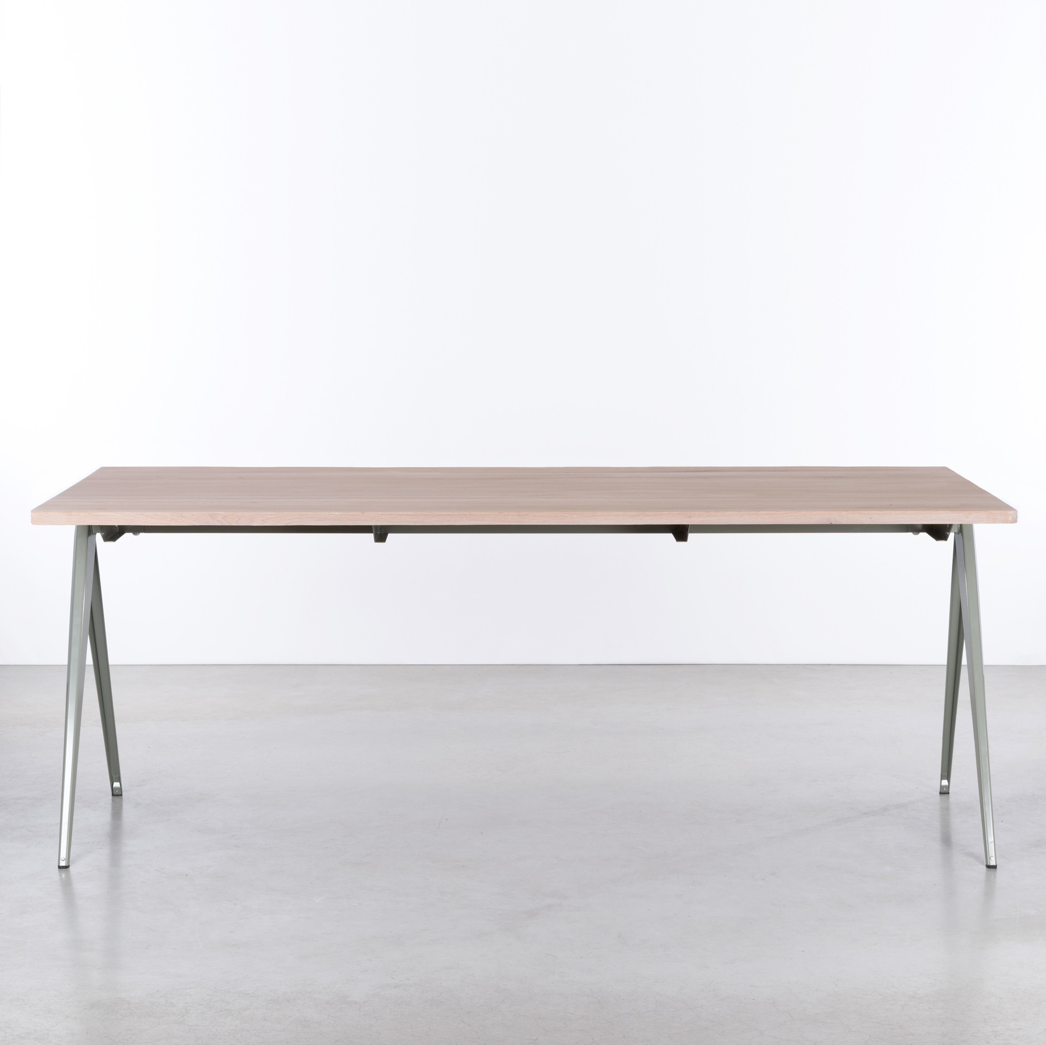 The top of the TD4 table is made of solid wood. You can choose from beech, oak or walnut. The solid wood has a smooth and soft finish, giving it a light appearance. A table that fits in different styles The table fits well in the current interior styles. With its seemingly simple design, its light appearance and good quality, it is a table that goes well with different interior styles. With its industrial origin, the TD4 table fits well in an industrial interior. The industrial school chair Galvanitas S16 looks beautiful. Both with the characteristic compass-shaped legs, they make a great dining room set.