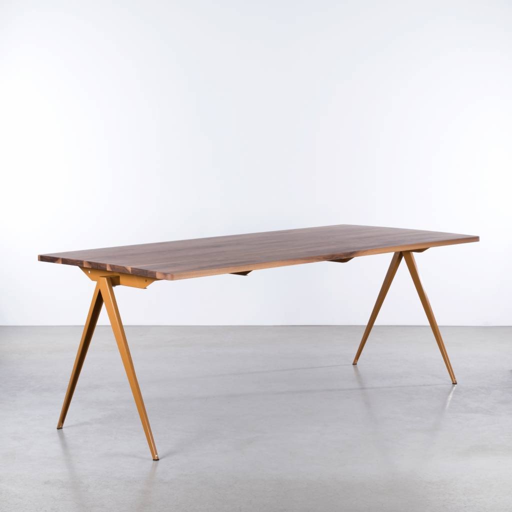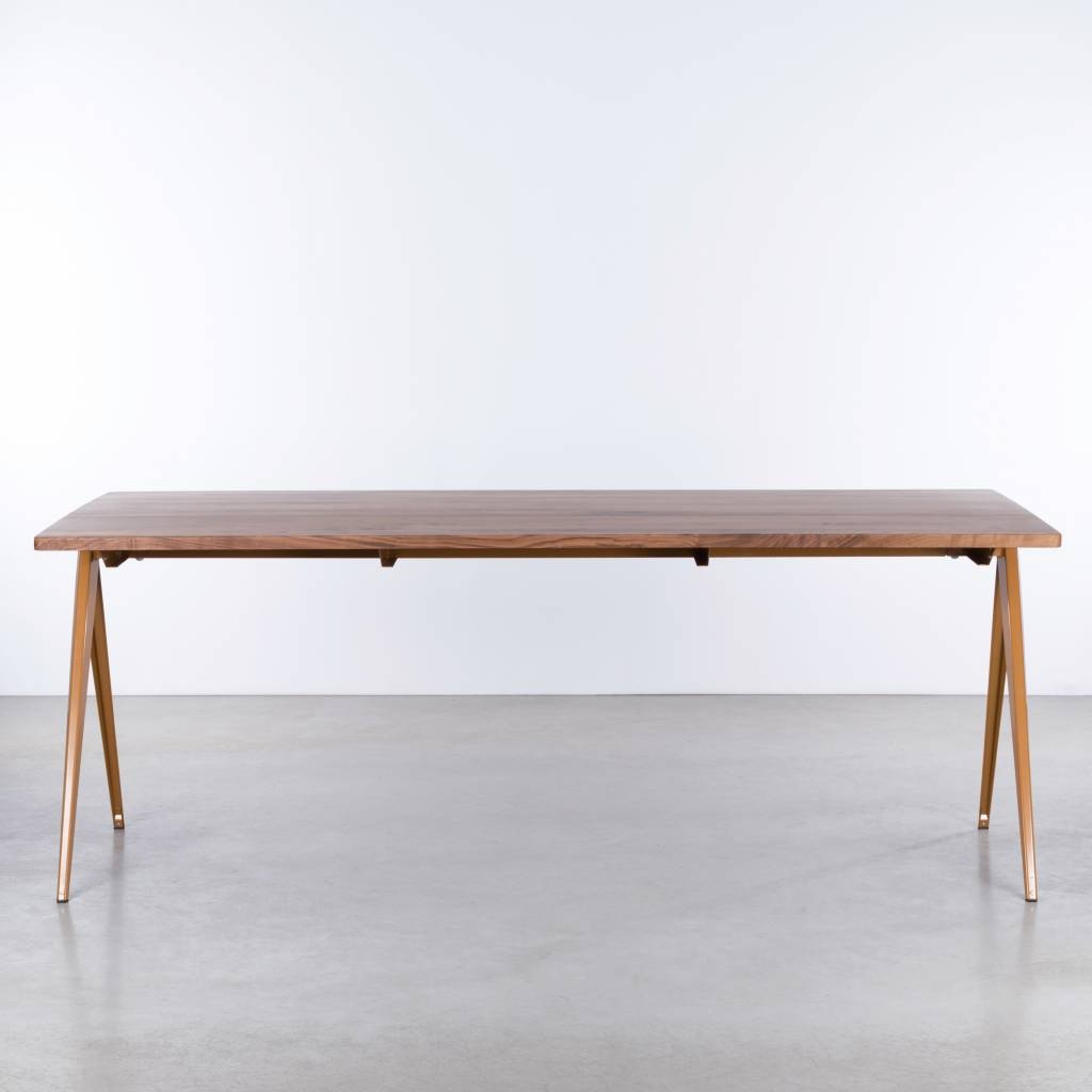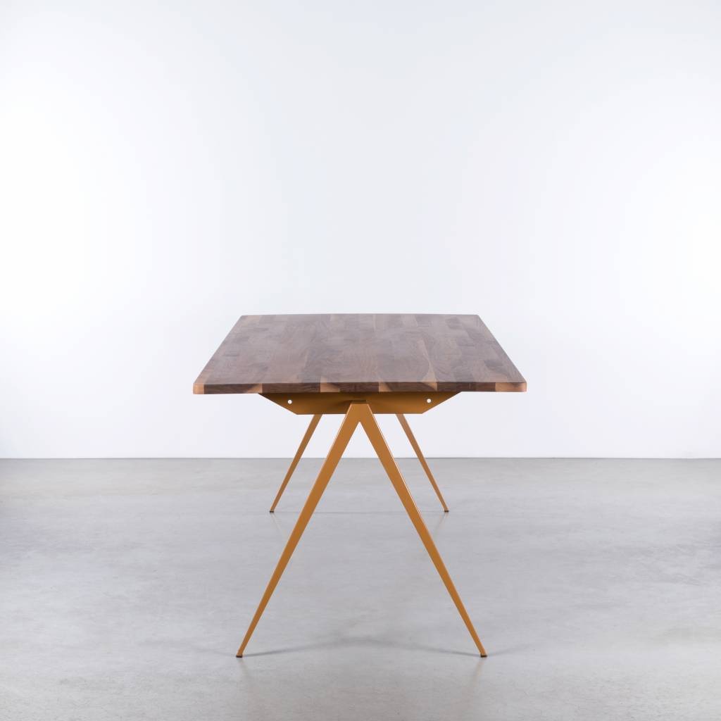 The TD4 table is a special design. Maybe it looks familiar to you. The table is based on the steel school tables from the 60s. Now a dining table with a metal base and a solid wood top. Constructively all elements are the same as the steel school table. The design with the clean lines and characteristic compass-shaped legs has also been adopted. The design may appear simple, but the trained eye will discover many beautiful and distinctive elements. Definitely a challenge for our renowned table maker, but the result is impressive.