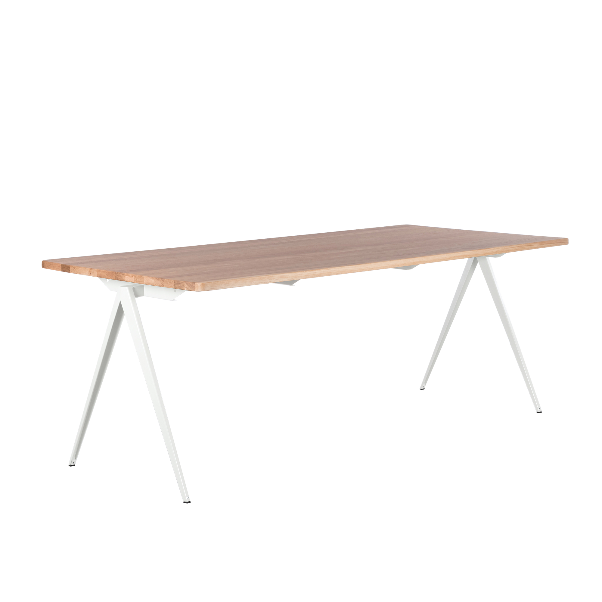 The top of the TD4 table is made of solid wood. You can choose from beech, oak or walnut. The solid wood has a smooth and soft finish, giving it a light appearance. A table that fits in different styles The table fits well in the current interior styles. With its seemingly simple design, its light appearance and good quality, it is a table that goes well with different interior styles. With its industrial origin, the TD4 table fits well in an industrial interior. The industrial school chair Galvanitas S16 looks beautiful. Both with the characteristic compass-shaped legs, they make a great dining room set.