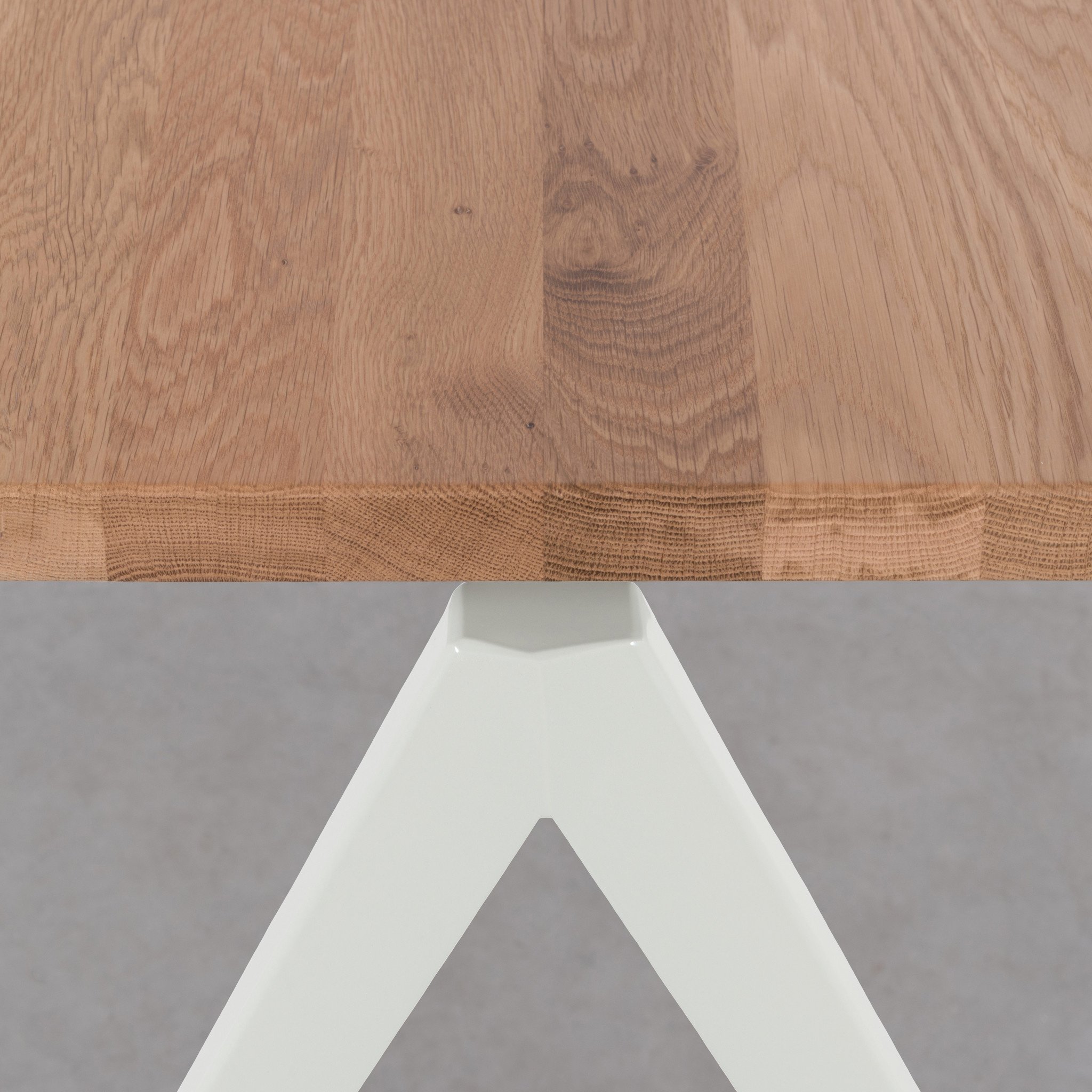 The TD4 table is a special design. Maybe it looks familiar to you. The table is based on the steel school tables from the 60s. Now a dining table with a metal base and a solid wood top. Constructively all elements are the same as the steel school table. The design with the clean lines and characteristic compass-shaped legs has also been adopted. The design may appear simple, but the trained eye will discover many beautiful and distinctive elements. Definitely a challenge for our renowned table maker, but the result is impressive.