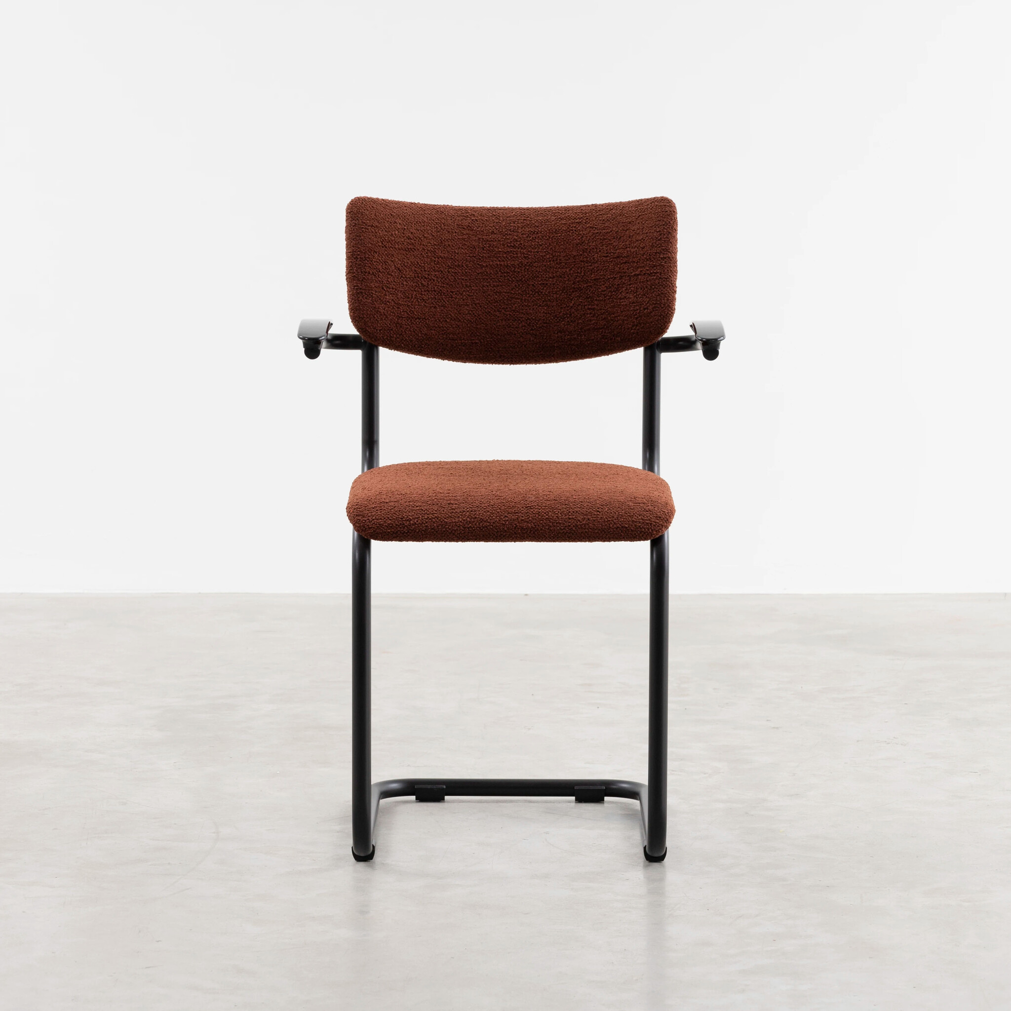 The Dykmeyer De Purmer is a tubular frame cantilever chair. Inspired by the Avant Garde chairs from the 1930s. The chair has a modern industrial look. With a good seat, it is an ideal dining room chair. The tubular frame has right angles and runs parallel to each other from the carriage to the backrest. Due to the kink in the tubular frame, the backrest is slightly tilted. This provides the right support for a delicious meal. The Bakelite armrests ensure that your arms also receive support. With its solid quality, the De Dykmeyer Purmer is suitable for catering, business and private use.