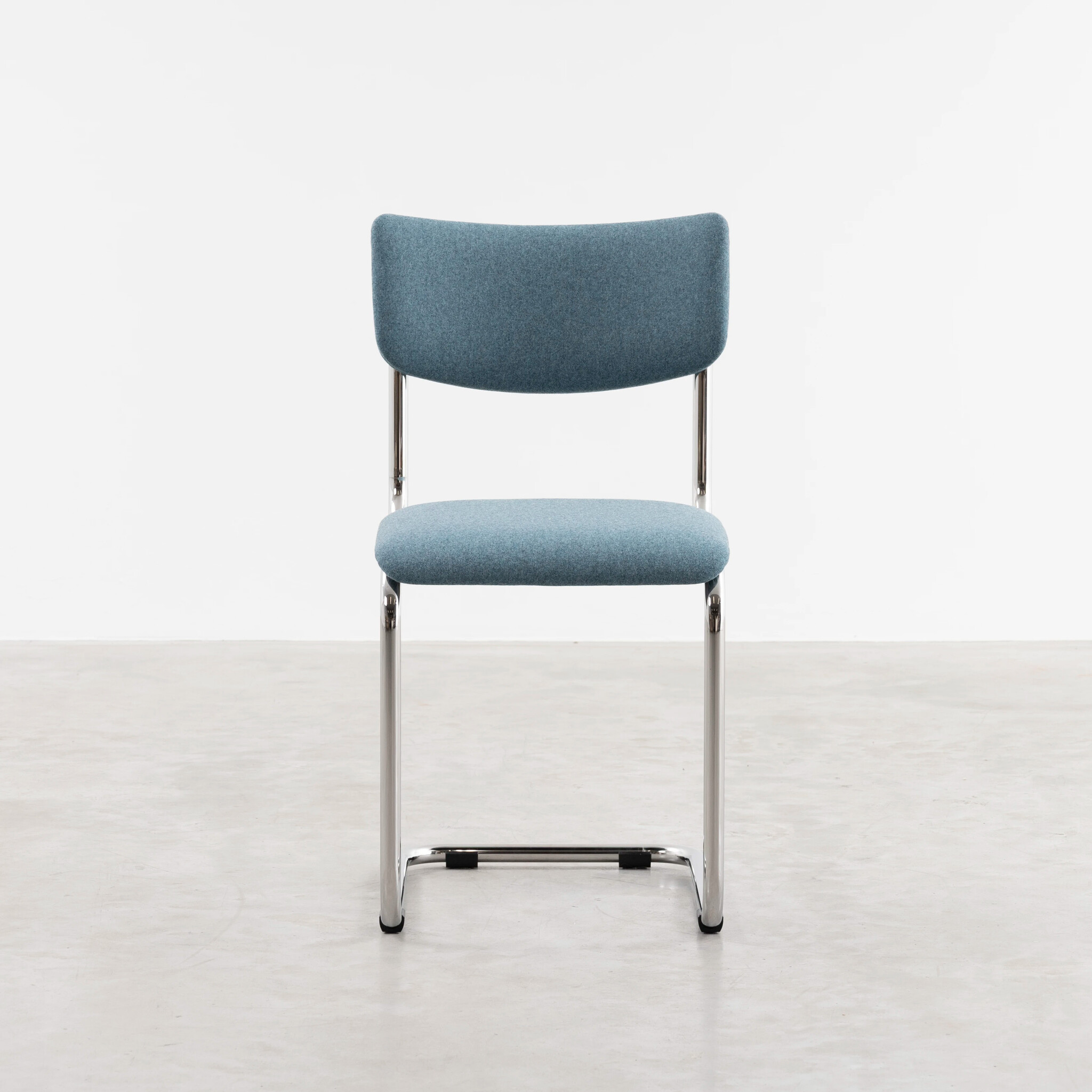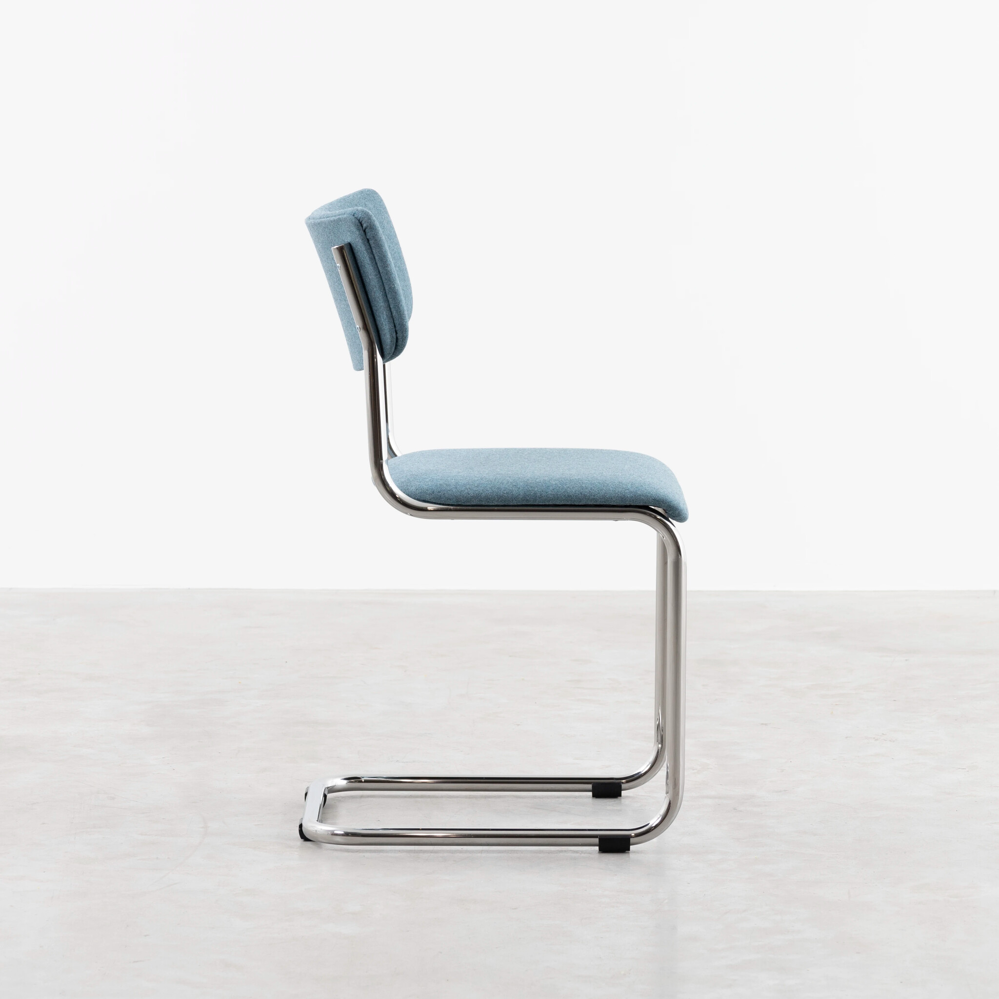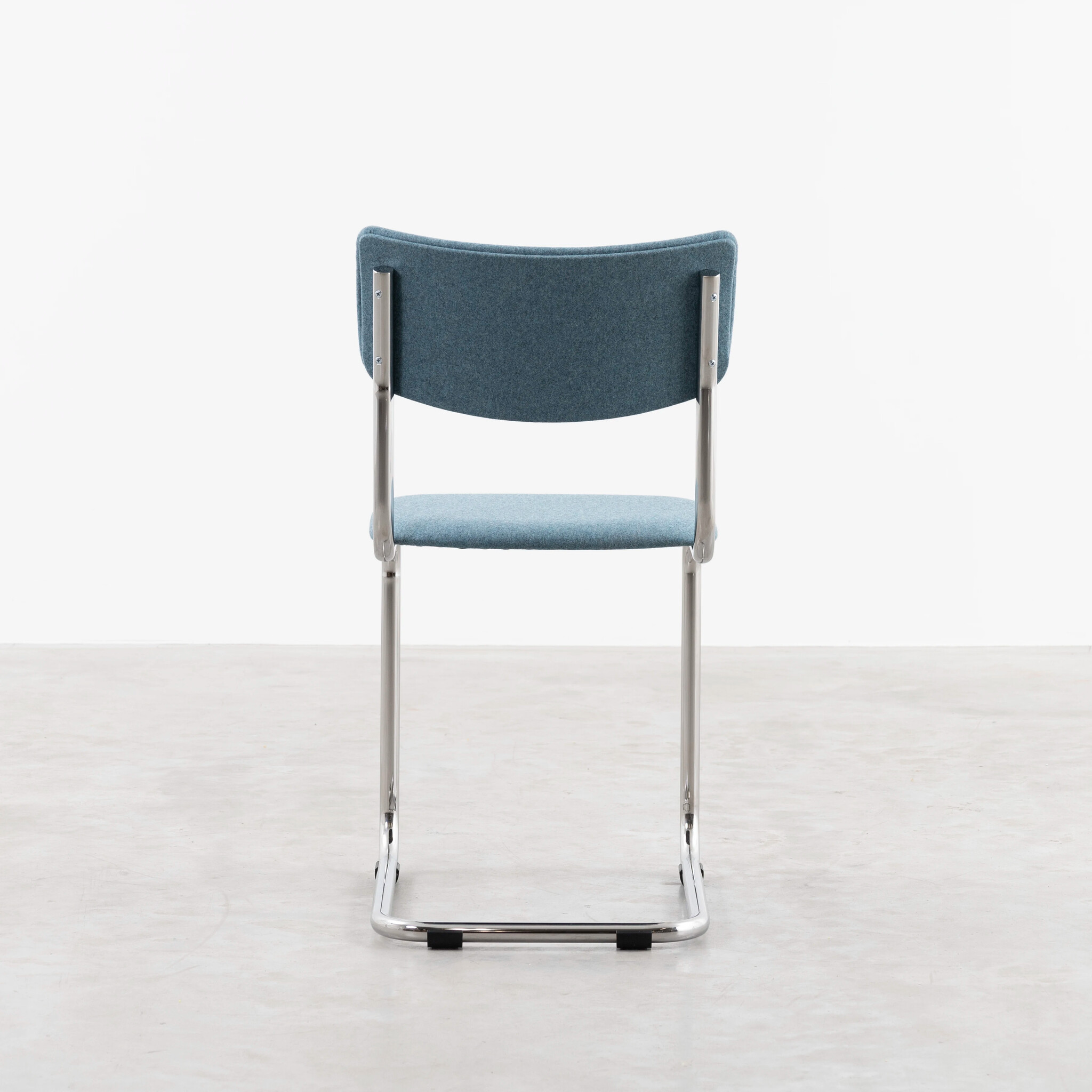 De Purmer design dining chair with chrome tubular frame | Facet Felt 144 Azure