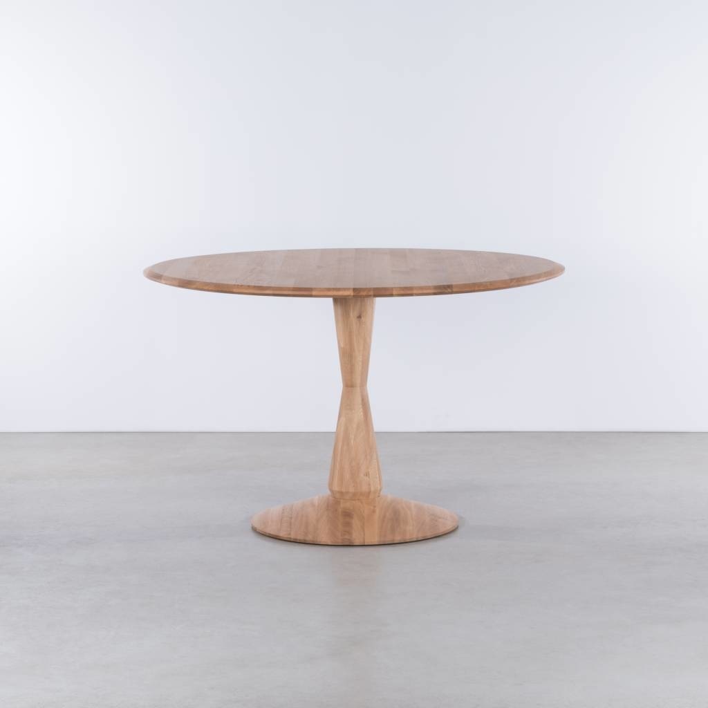 The Volante is a round dining table made of solid wood with an elegant shape. A special table, which immediately stands out due to its design. The table has a central leg made of solid wood. A table that looks simple, but is graceful in the details.