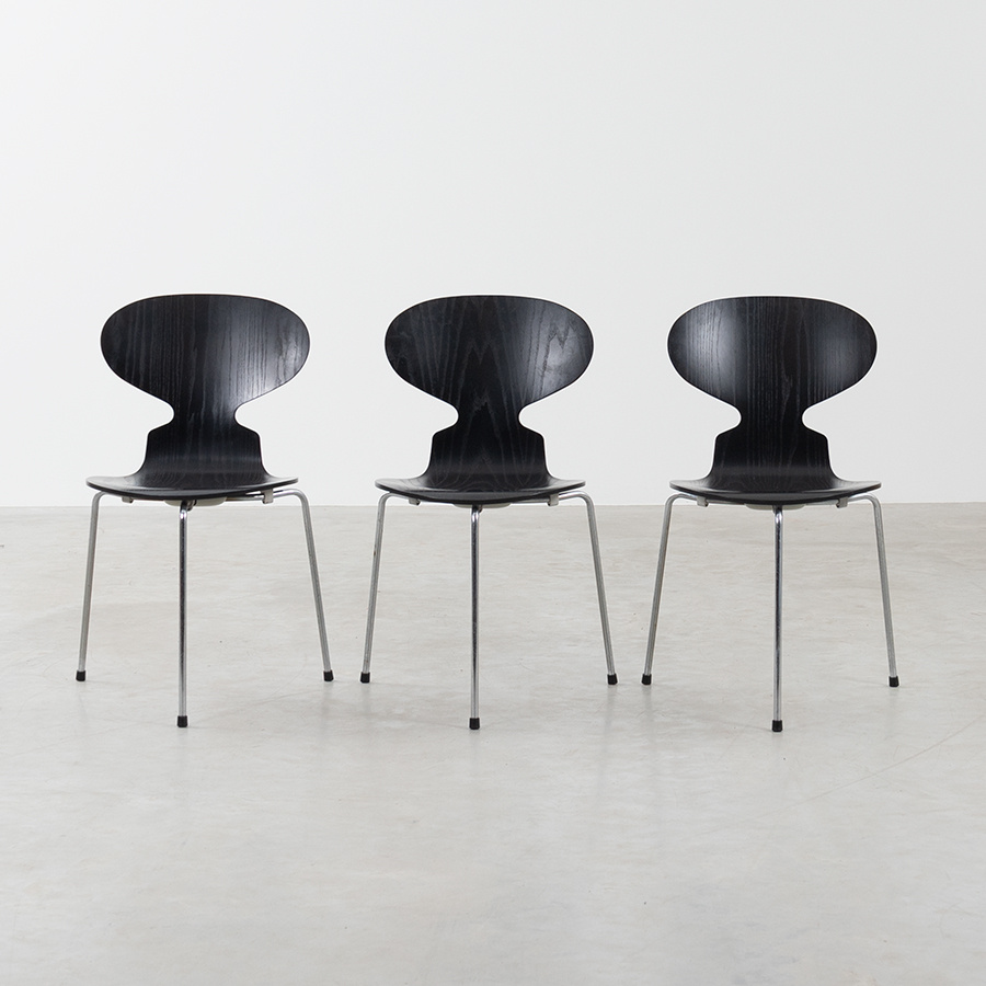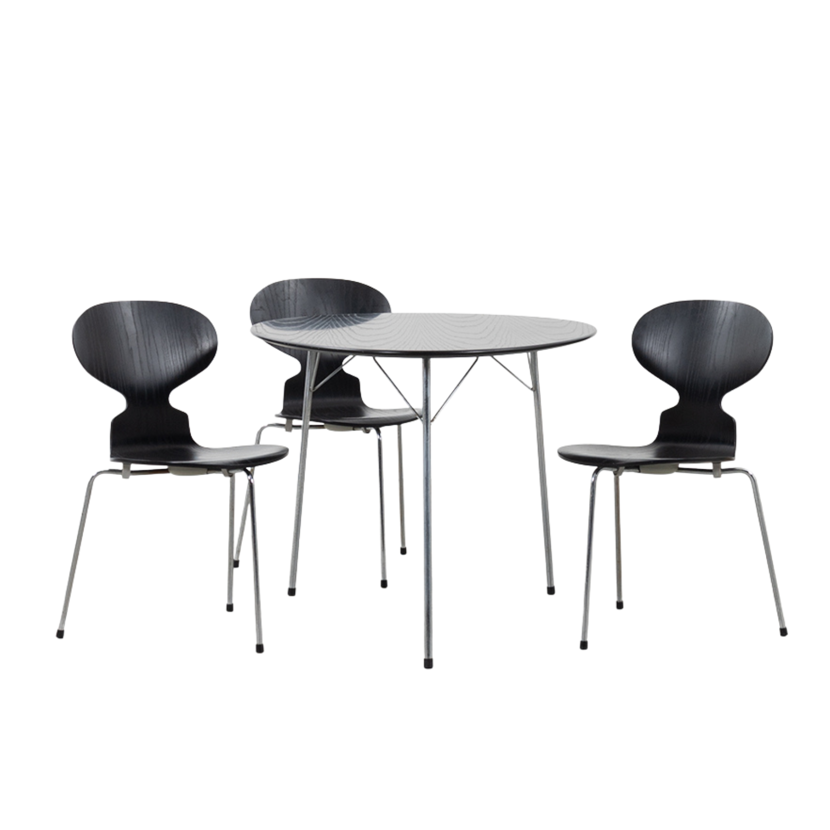 Arne Jacobsen set van Egg tafel + 3 Mier stoelen 3 poot zwart Fritz Hansen