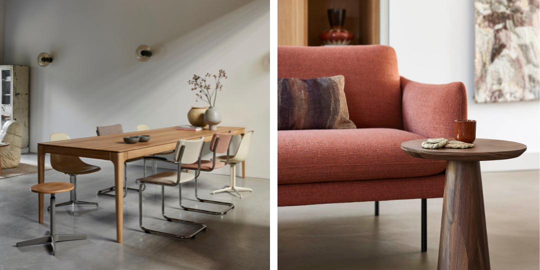 Deze eigen merken staan elk voor een eigen stijl en verhaal. Sav & Økse bijvoorbeeld, richt zich op Scandinavisch design met warme houtsoorten en minimalistische vormen. Sav & Økse bestaat inmiddels uit een brede collectie meubels met aandacht voor detaillering, lijnvoering en functionaliteit. Dykmeyer en Tubax combineren industriële invloeden met comfort en zijn gebaseerd op het klassieke buisframe meubilair uit de jaren 30: een Hollandse stijl die later de standaard werd in industriële interieurs.