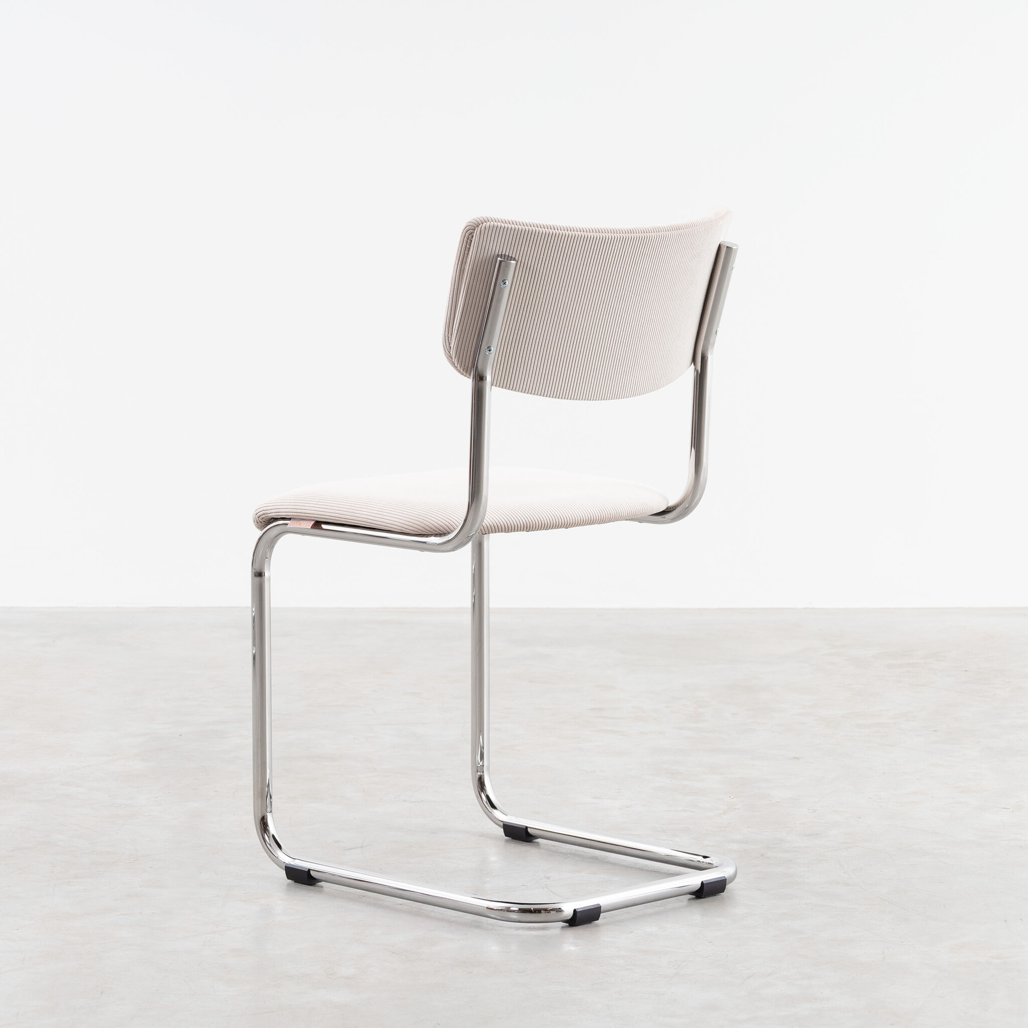 De Purmer is een buisframe sledestoel. Geïnspireerd op de Avant Garde stoelen uit de jaren ’30. De stoel heeft een moderne industriële uitstraling. Met daarbij een goede zit, is het een ideale eetkamerstoel. Het buisframe frame heeft rechte hoeken en loopt van de slede tot en met de rugleuning evenwijdig aan elkaar. Door de knik in het buisframe staat de rugleuning licht gekanteld. Dit geeft de juiste ondersteuning om heerlijk te tafelen. De optionele bakelieten armleuningen zorgen ervoor dat ook je armen ondersteuning krijgen. Met zijn degelijke kwaliteit is De Purmer geschikt voor zowel horeca, zakelijk als particulier gebruik.