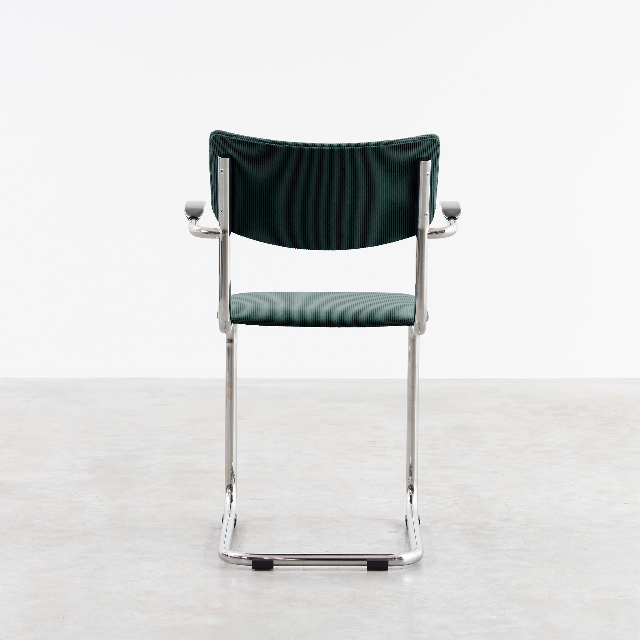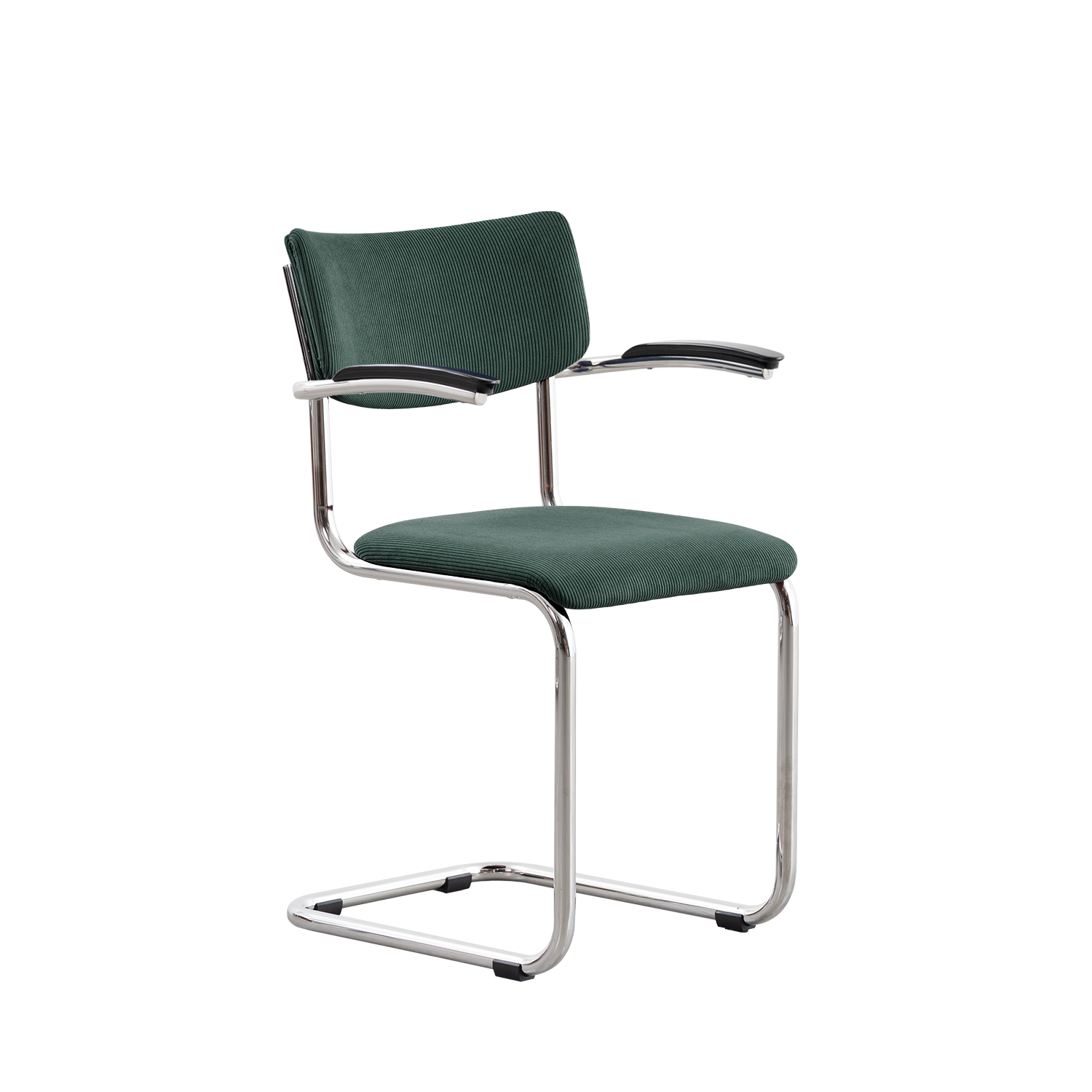 Stoel De Purmer donkergroen | met armleuning | Chromen buisframe | Ribstof