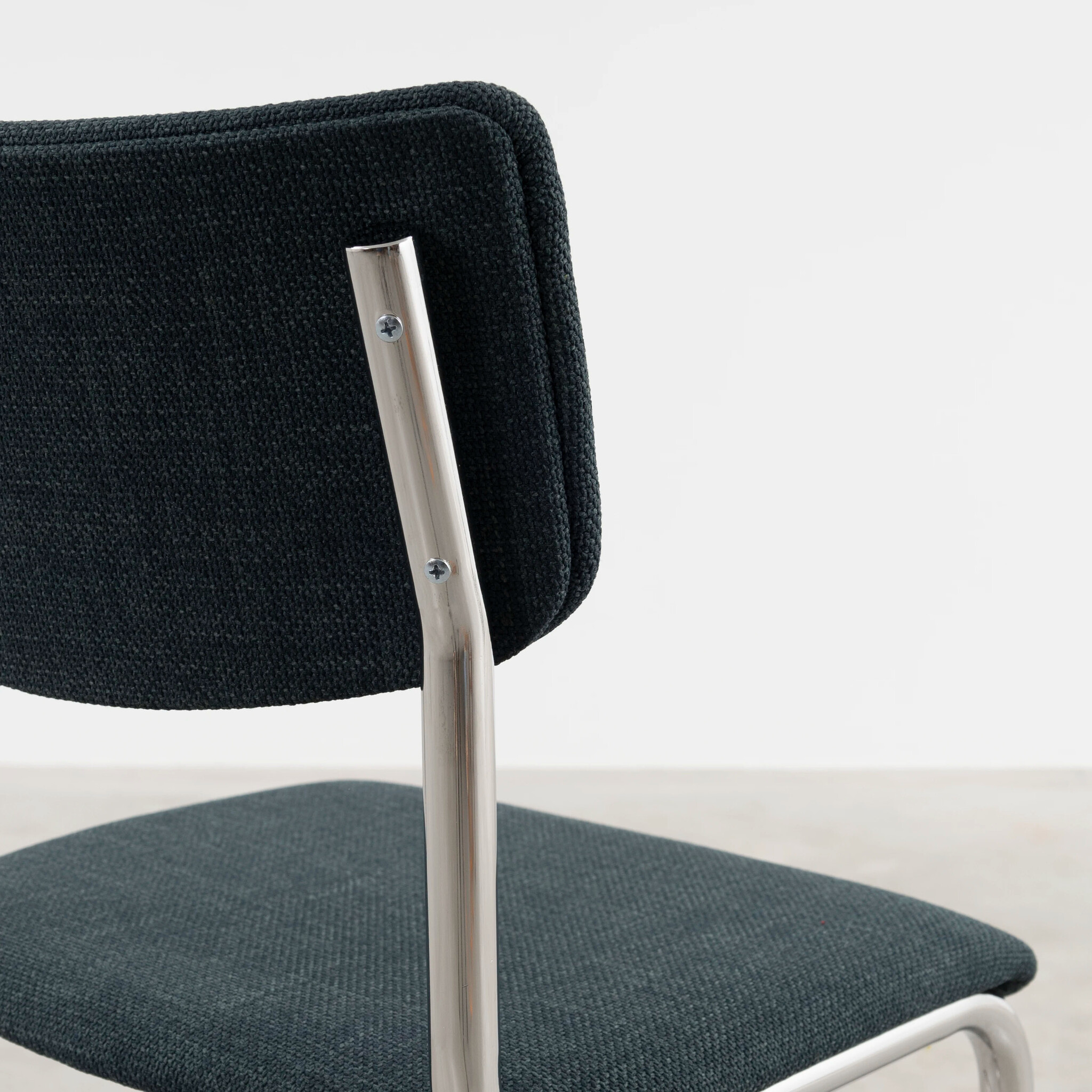 De Purmer is een buisframe sledestoel. Geïnspireerd op de Avant Garde stoelen uit de jaren ’30. De stoel heeft een moderne industriële uitstraling. Met daarbij een goede zit, is het een ideale eetkamerstoel. Het buisframe frame heeft rechte hoeken en loopt van de slede tot en met de rugleuning evenwijdig aan elkaar. Door de knik in het buisframe staat de rugleuning licht gekanteld. Dit geeft de juiste ondersteuning om heerlijk te tafelen. De optionele bakelieten armleuningen zorgen ervoor dat ook je armen ondersteuning krijgen. Met zijn degelijke kwaliteit is De Purmer geschikt voor zowel horeca, zakelijk als particulier gebruik.