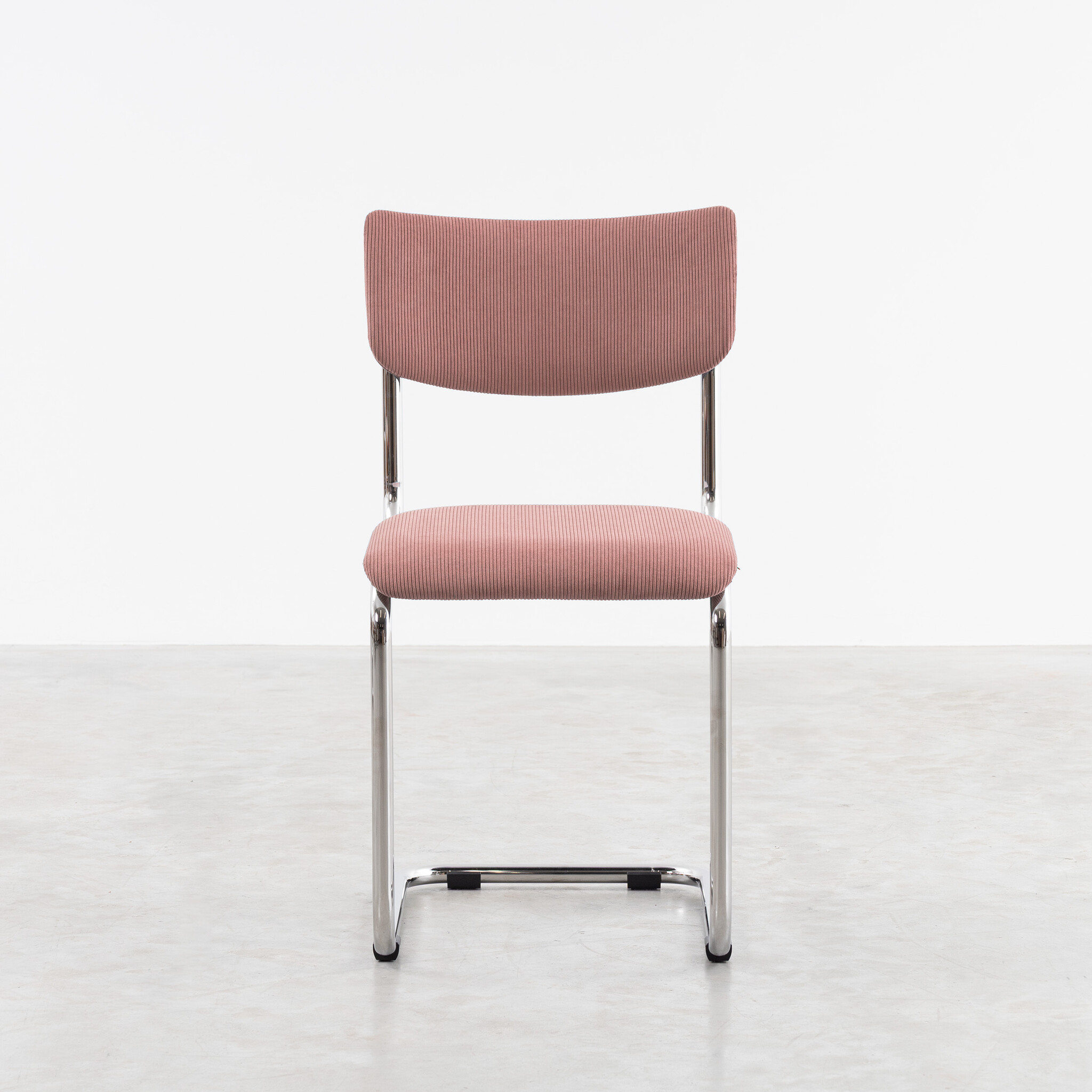 De Purmer is een buisframe sledestoel. Geïnspireerd op de Avant Garde stoelen uit de jaren ’30. De stoel heeft een moderne industriële uitstraling. Met daarbij een goede zit, is het een ideale eetkamerstoel. Het buisframe frame heeft rechte hoeken en loopt van de slede tot en met de rugleuning evenwijdig aan elkaar. Door de knik in het buisframe staat de rugleuning licht gekanteld. Dit geeft de juiste ondersteuning om heerlijk te tafelen. De optionele bakelieten armleuningen zorgen ervoor dat ook je armen ondersteuning krijgen. Met zijn degelijke kwaliteit is De Purmer geschikt voor zowel horeca, zakelijk als particulier gebruik.