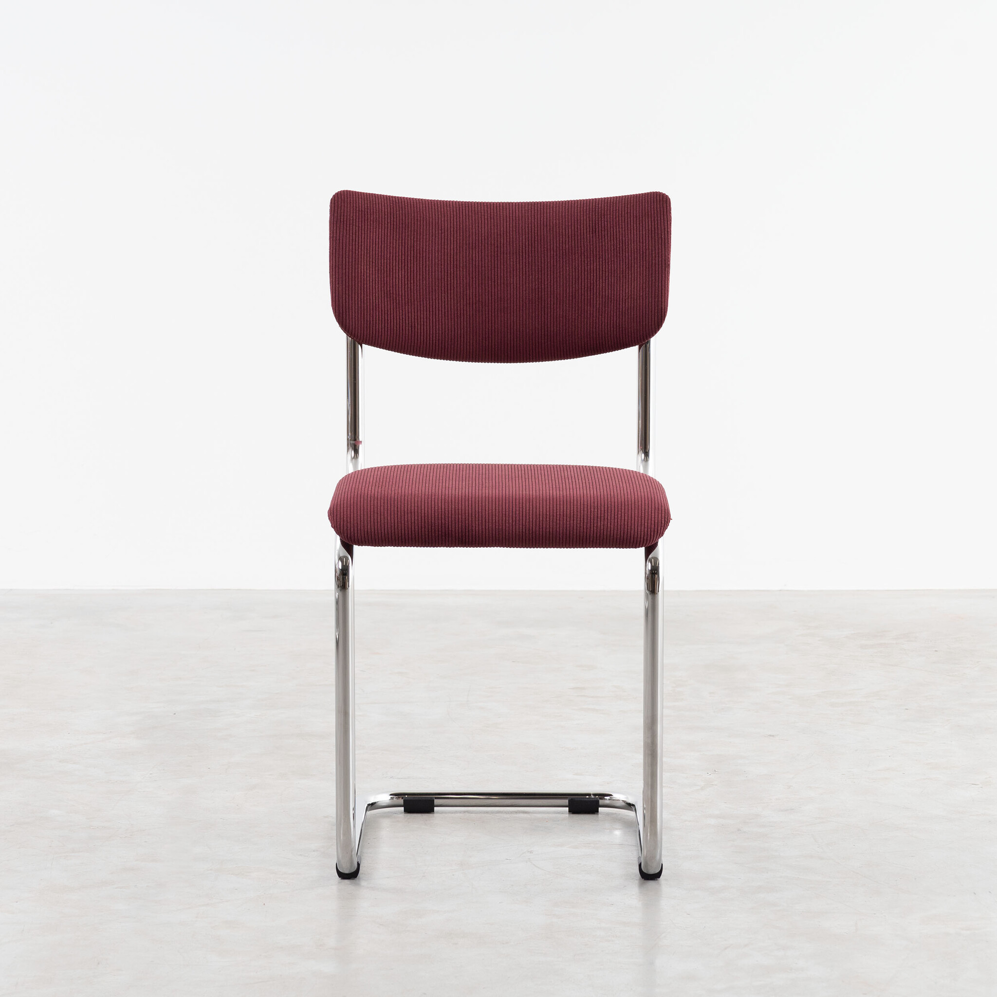 De Purmer is een buisframe sledestoel. Geïnspireerd op de Avant Garde stoelen uit de jaren ’30. De stoel heeft een moderne industriële uitstraling. Met daarbij een goede zit, is het een ideale eetkamerstoel. Het buisframe frame heeft rechte hoeken en loopt van de slede tot en met de rugleuning evenwijdig aan elkaar. Door de knik in het buisframe staat de rugleuning licht gekanteld. Dit geeft de juiste ondersteuning om heerlijk te tafelen. De optionele bakelieten armleuningen zorgen ervoor dat ook je armen ondersteuning krijgen. Met zijn degelijke kwaliteit is De Purmer geschikt voor zowel horeca, zakelijk als particulier gebruik.