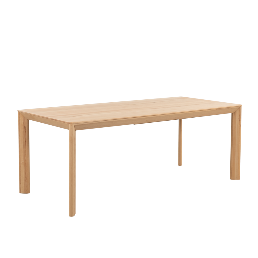 De uitschuifbladen van de uitschuifbare Eevi tafel hangen onder het tafelblad. Ze hangen hierbij enigszins schuin. Bij een massief houten tafel loopt de lijntekening van het hout niet door bij het uitgeschoven deel van de tafel. Kom eens langs in één van de showrooms om de uitschuifbare tafel te bekijken en de mogelijkheden met ons te bespreken.