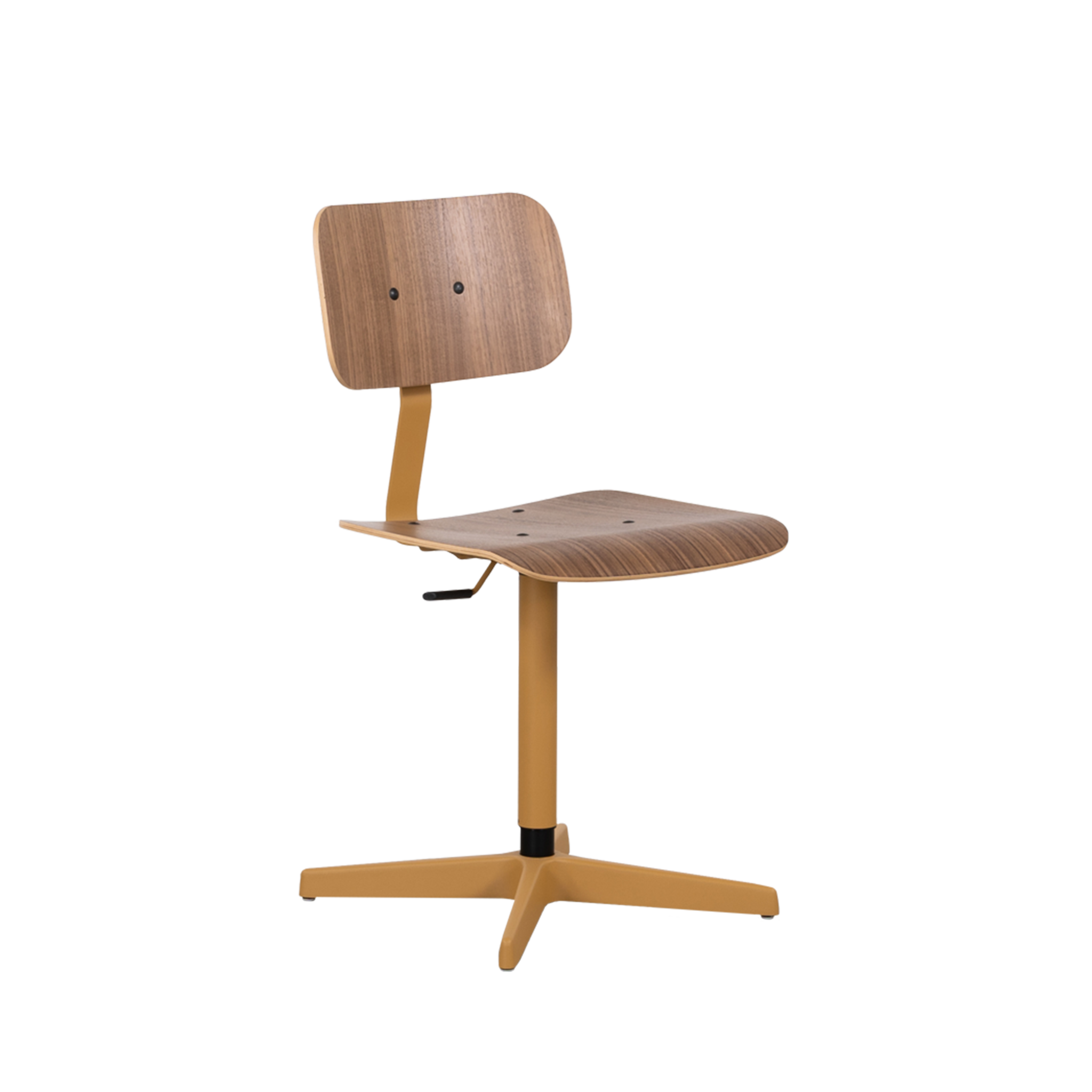 A standout feature is the frame, available in 5 different powder-coated colors. Whether you choose graphite black, brown beige, pearl mouse grey, grey beige, or light ivory, this work chair seamlessly complements any style and taste. The seat and backrest are available in oak or walnut veneer.