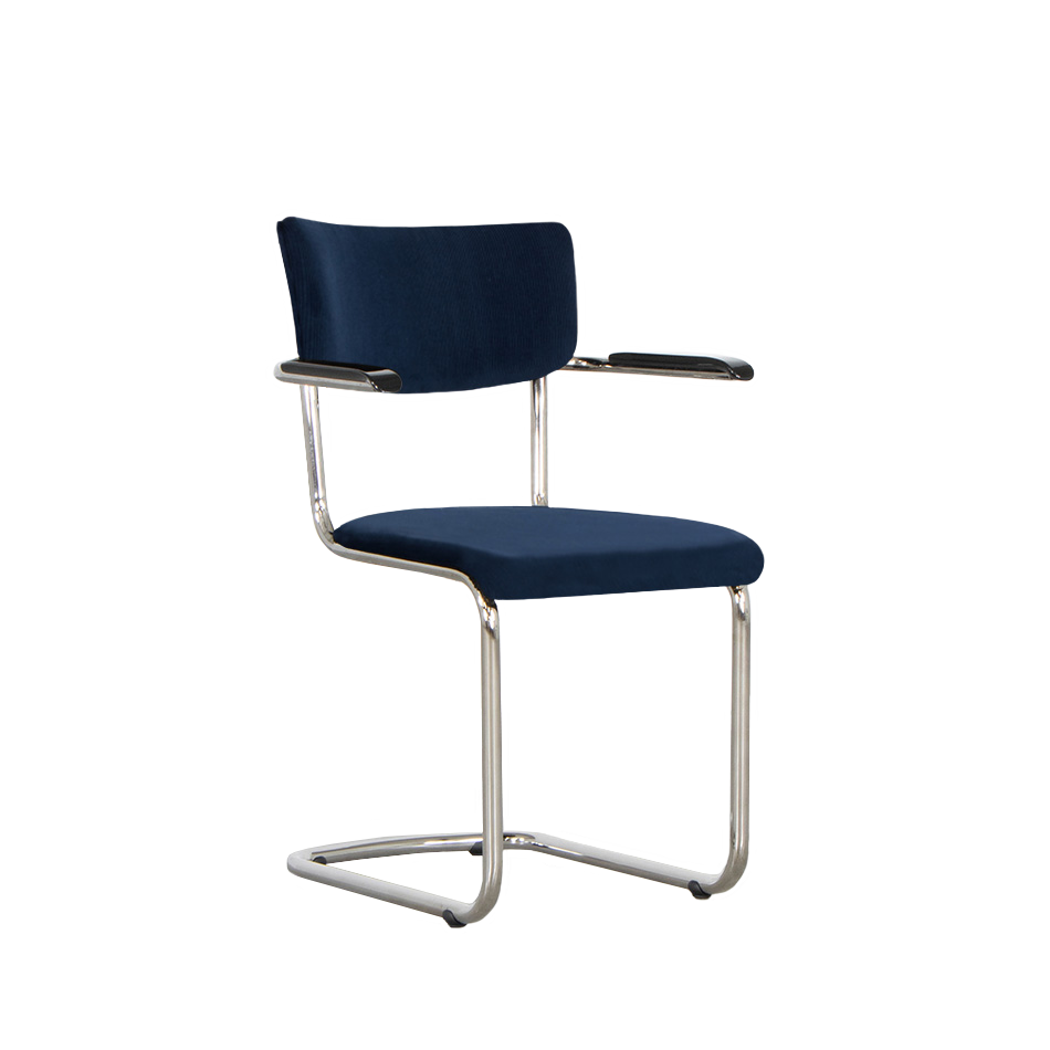 Deze buisframe stoel Elsene is leverbaar in verschillende soorten en kleuren stof. Standaard is de stoel leverbaar in Manchester ribstoffen. Het is ook mogelijk om te kiezen voor een van de vele andere stoffen die we hebben. We hebben stoffen van Keymer, Lancier, Textaafoam, Kvadrat, De Ploeg en Gabriel. Je kunt de stoffen in onze showrooms komen bekijken.
