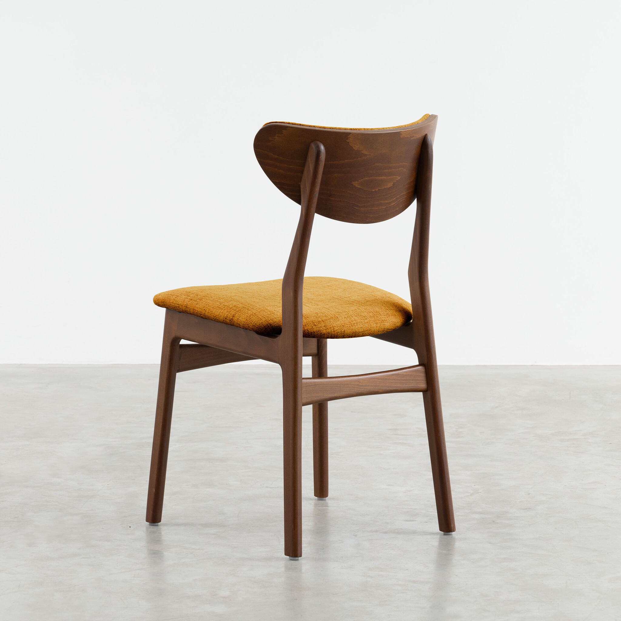 Eetkamerstoel Enni heeft een mooi eenvoudig onderstel en een comfortabele gestoffeerde zitting en rugleuning. De zichtbare houten rand in de rugleuning geeft de stoel een gelaagde touch. De gestoffeerde zitting oogt warm en uitnodigend. Op Deense stoel Enni kun je uren tafelen!