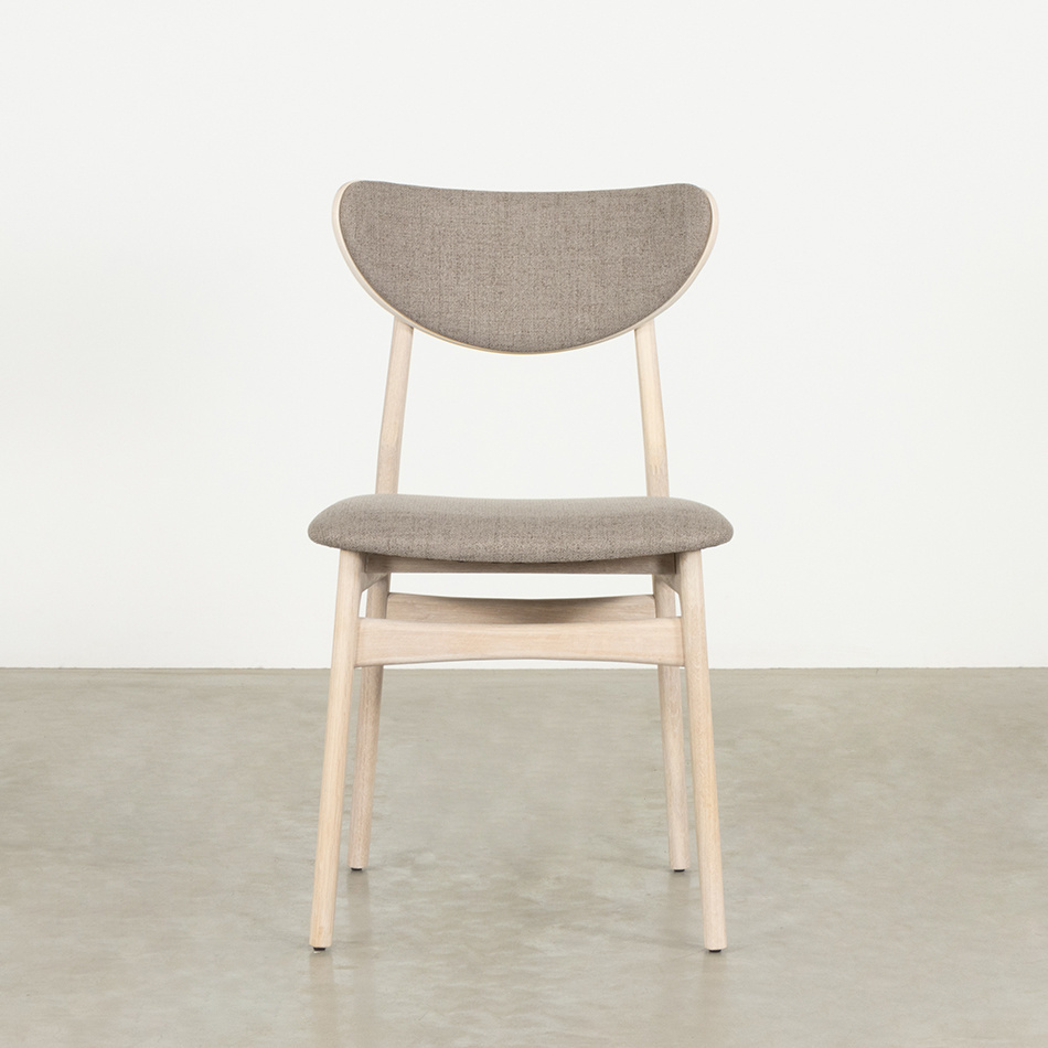Eetkamerstoel Enni heeft een mooi eenvoudig onderstel en een comfortabele gestoffeerde zitting en rugleuning. De zichtbare houten rand in de rugleuning geeft de stoel een gelaagde touch. De gestoffeerde zitting oogt warm en uitnodigend. Op Deense stoel Enni kun je uren tafelen!