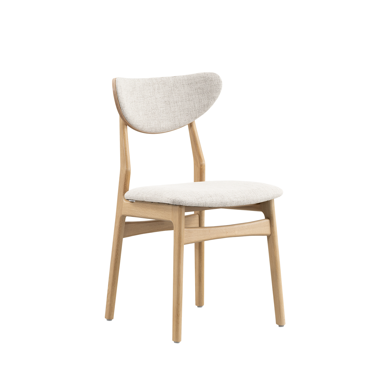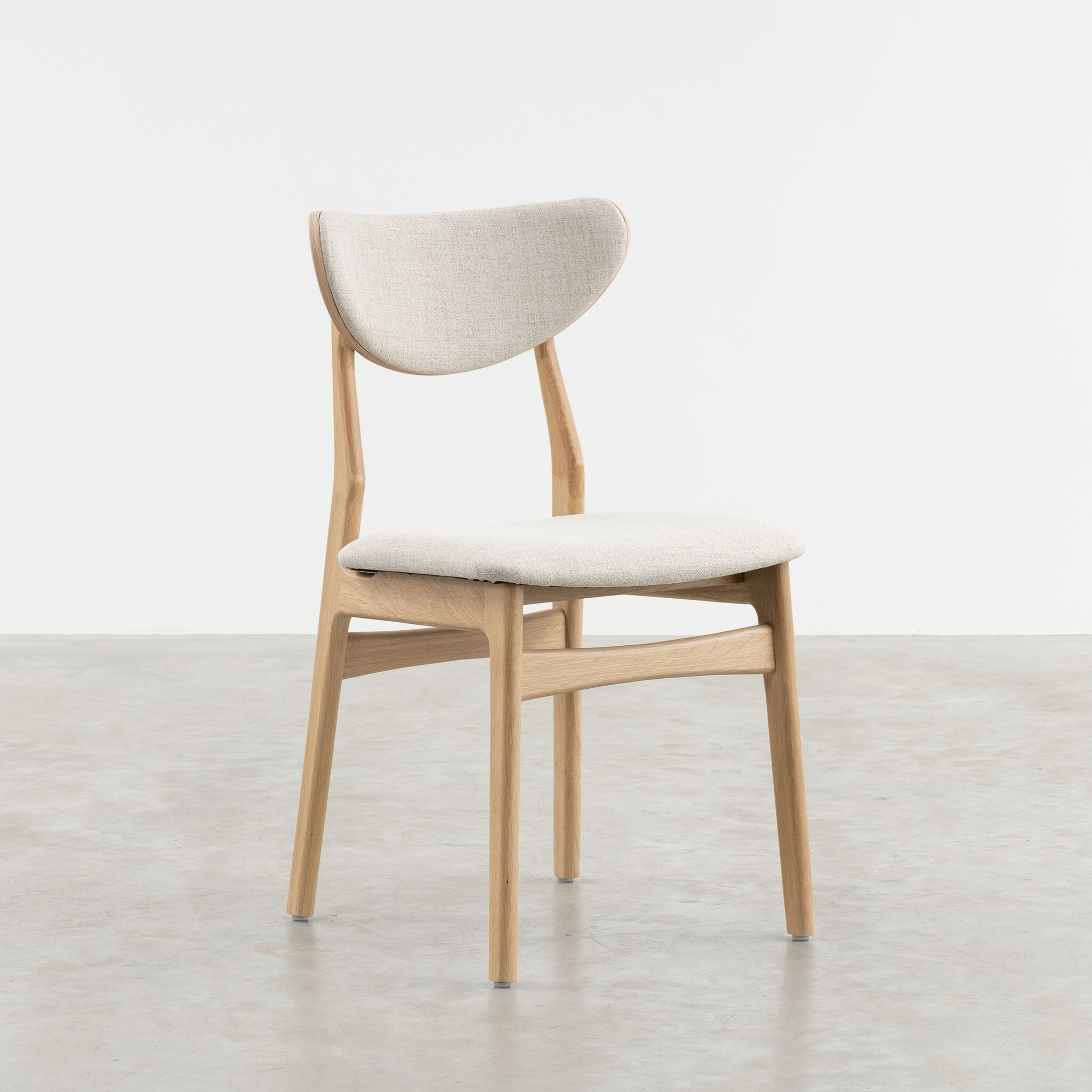 Eetkamerstoel Enni heeft een mooi eenvoudig onderstel en een comfortabele gestoffeerde zitting en rugleuning. De zichtbare houten rand in de rugleuning geeft de stoel een gelaagde touch. De gestoffeerde zitting oogt warm en uitnodigend. Op de Deense stoel Enni kun je uren tafelen!