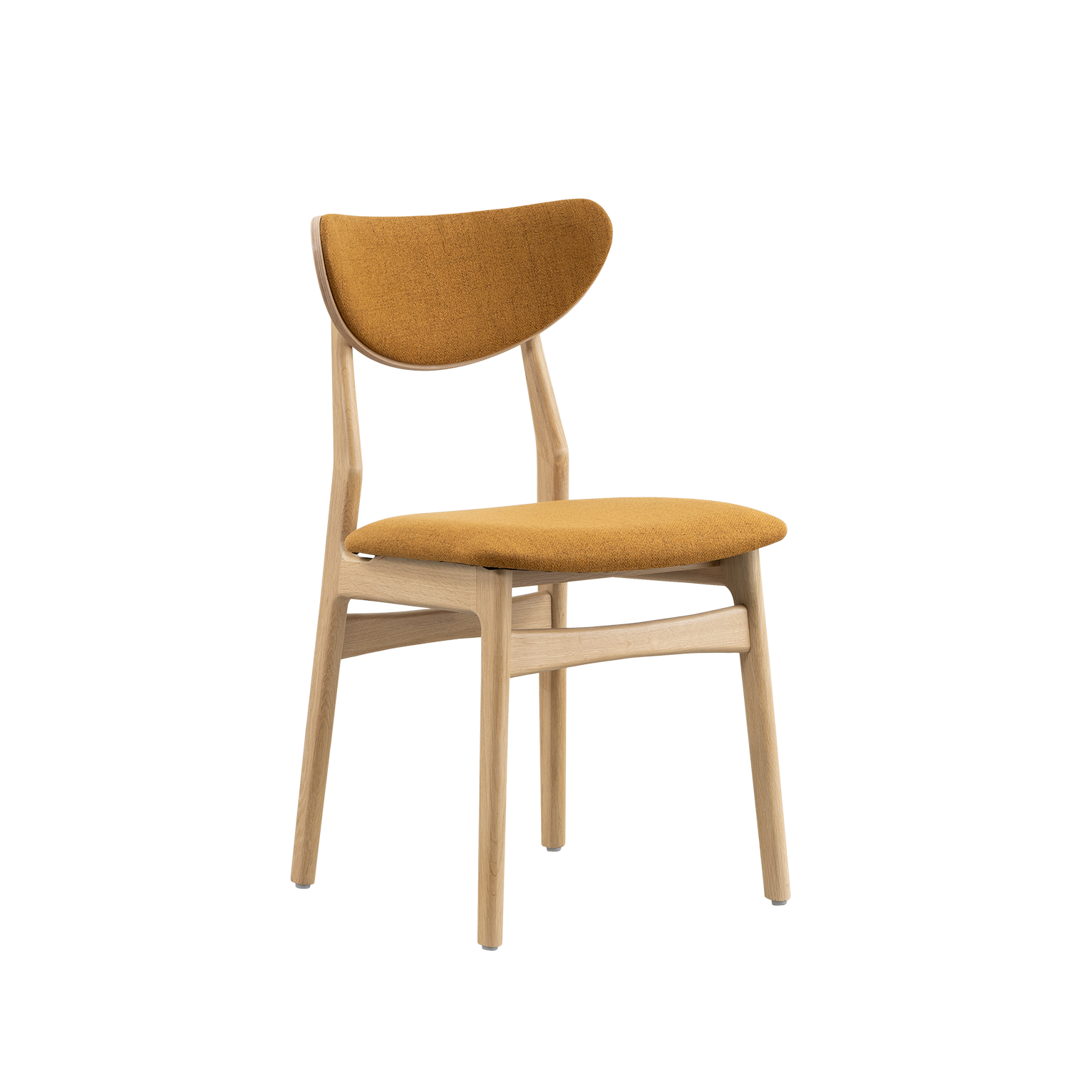 Eetkamerstoel Enni heeft een mooi eenvoudig onderstel en een comfortabele gestoffeerde zitting en rugleuning. De zichtbare houten rand in de rugleuning geeft de stoel een gelaagde touch. De gestoffeerde zitting oogt warm en uitnodigend. Op de Deense stoel Enni kun je uren tafelen!