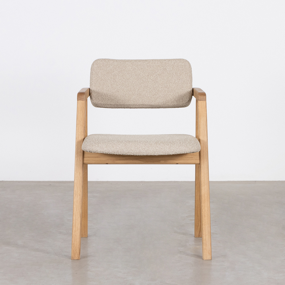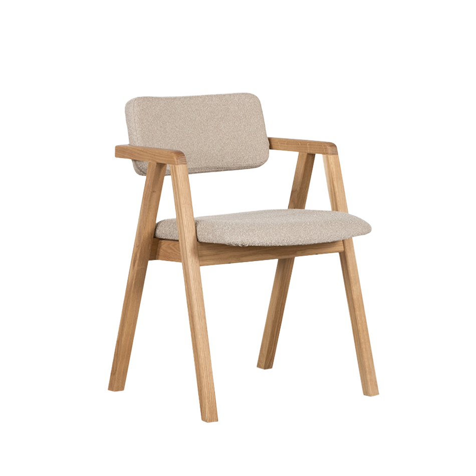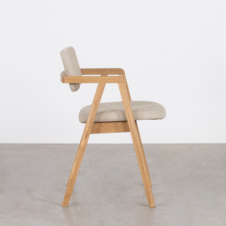 De grote kracht van stoel Enya is het fraaie A-frame van eikenhout. Het oogt stevig, aards en vriendelijk tegelijk. Heel nuchter, niks hoog in de bol. Het maakt deze stoel een stabiele waarde rondom de eettafel. Een favoriete ankerplek in je huis.