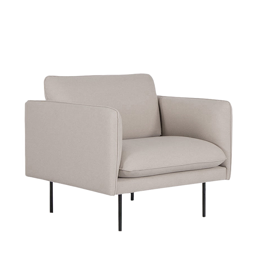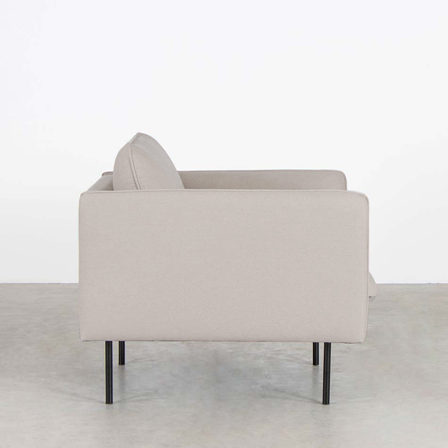 De poten van onze Jolin ogen rank, maar zijn van stevig, zwart gepoedercoat staal. Alle kussens zijn met klittenband aan het frame bevestigd, zodat ze goed op hun plaats blijven. De fauteuil lijkt op het eerste gezicht op de Rølde, maar er zijn wel degelijk verschillen: de kussens van Jolin zijn afgewerkt met een piping bij de naden en de leuning van het hoekelement is driehoekig.