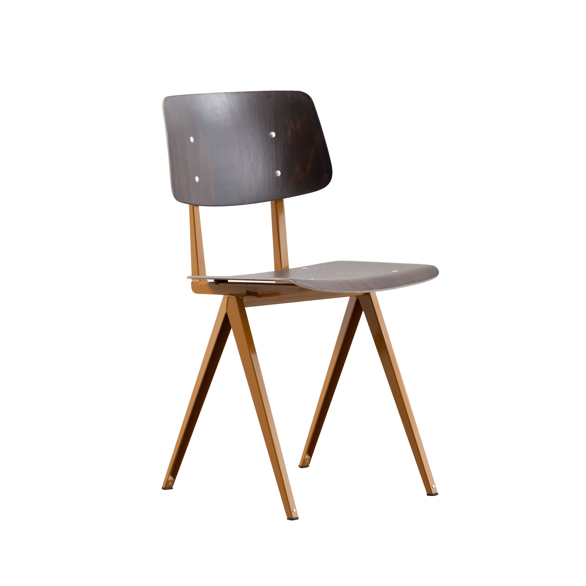 Materiaal: frame gemaakt van gevouwen plaatstaal. Zit- en rugleuning van kunsthars plywood hout.