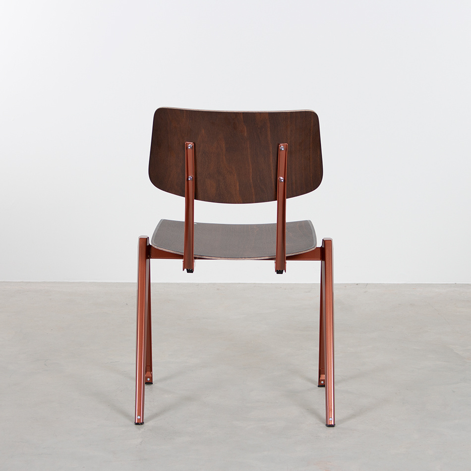 De stoel werd eind jaren ’50, begin jaren ’60 ontworpen en geproduceerd door Galvanitas in Oosterhout. In plaats van de gebruikelijke buisconstructie, koos de ontwerper voor een frame van geperst plaatstaal, wat zorgde voor een revolutionair en solide ontwerp. De stoel is speciaal ontworpen voor intensief gebruik in openbare gebouwen zoals scholen, instellingen en kantines.