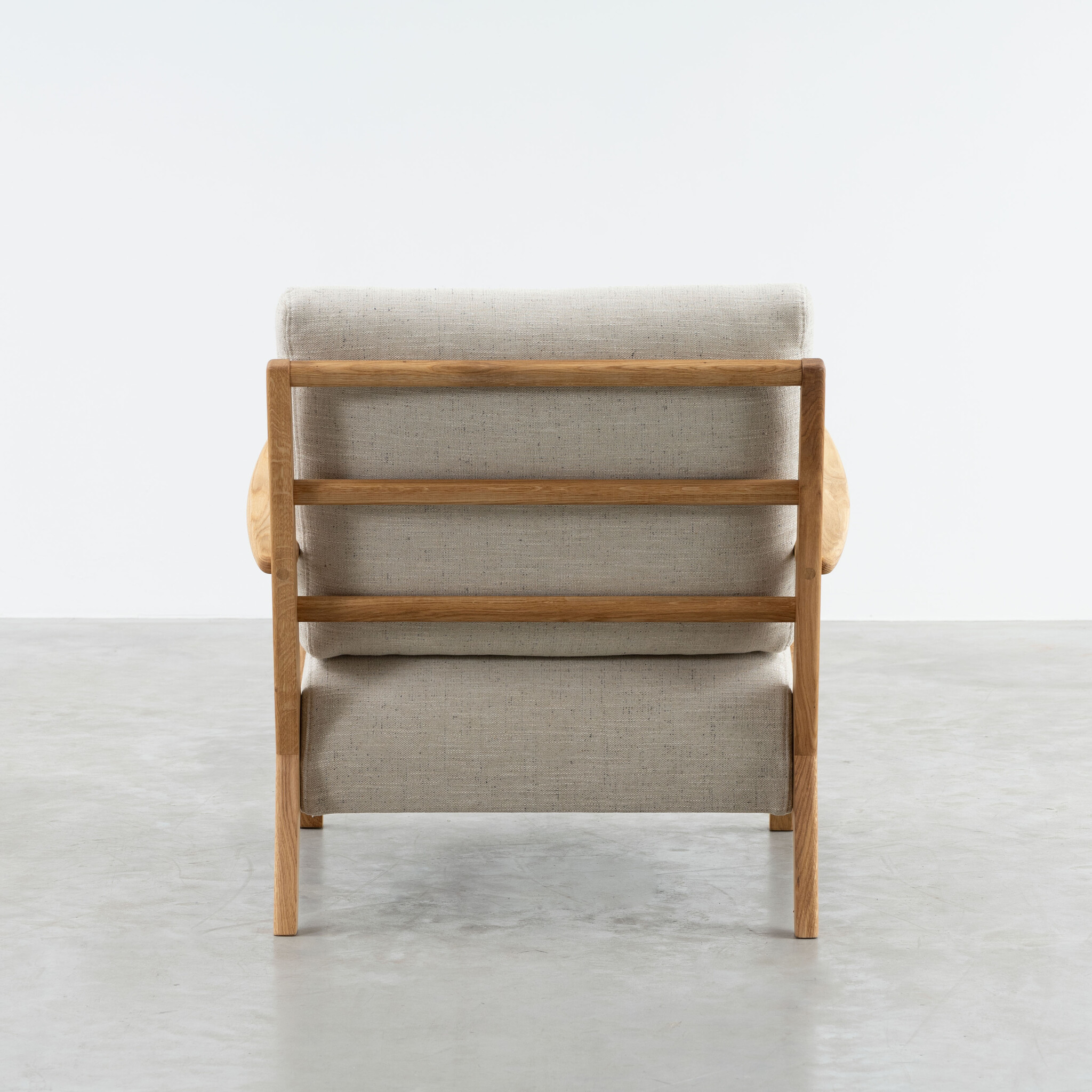 Fauteuil Hans is gemaakt van zorgvuldig geselecteerd eikenhout dat vakkundig en met respect is behandeld. Het hout is afgewerkt met naturel olie. De armleggers van de stoel zijn breed en mooi afgerond en voelen dan ook heerlijk aan.