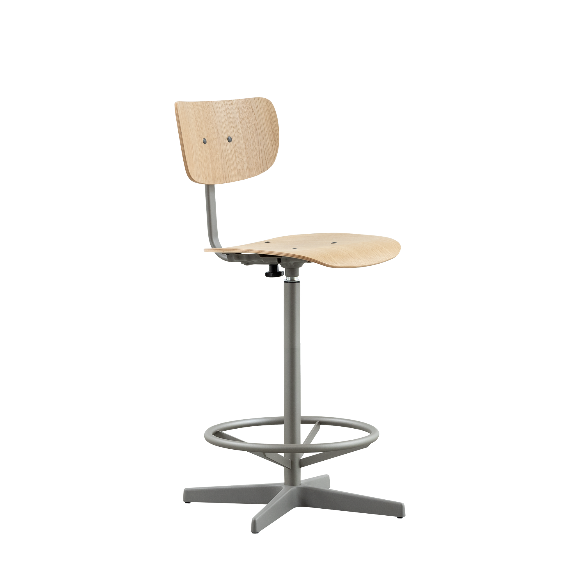 De Jops counter barstoel combineert eenvoud en functionaliteit in een stijlvol design dat geschikt is voor uiteenlopende toepassingen. Met een zitting en rugleuning van gebogen hout, biedt deze stoel optimaal comfort, ideaal voor langdurig gebruik. De zitting en rugleuning zijn verkrijgbaar in een hoogwaardig fineer van echt eikenhout of walnotenhout, wat de barstoel een natuurlijke en warme uitstraling geeft.