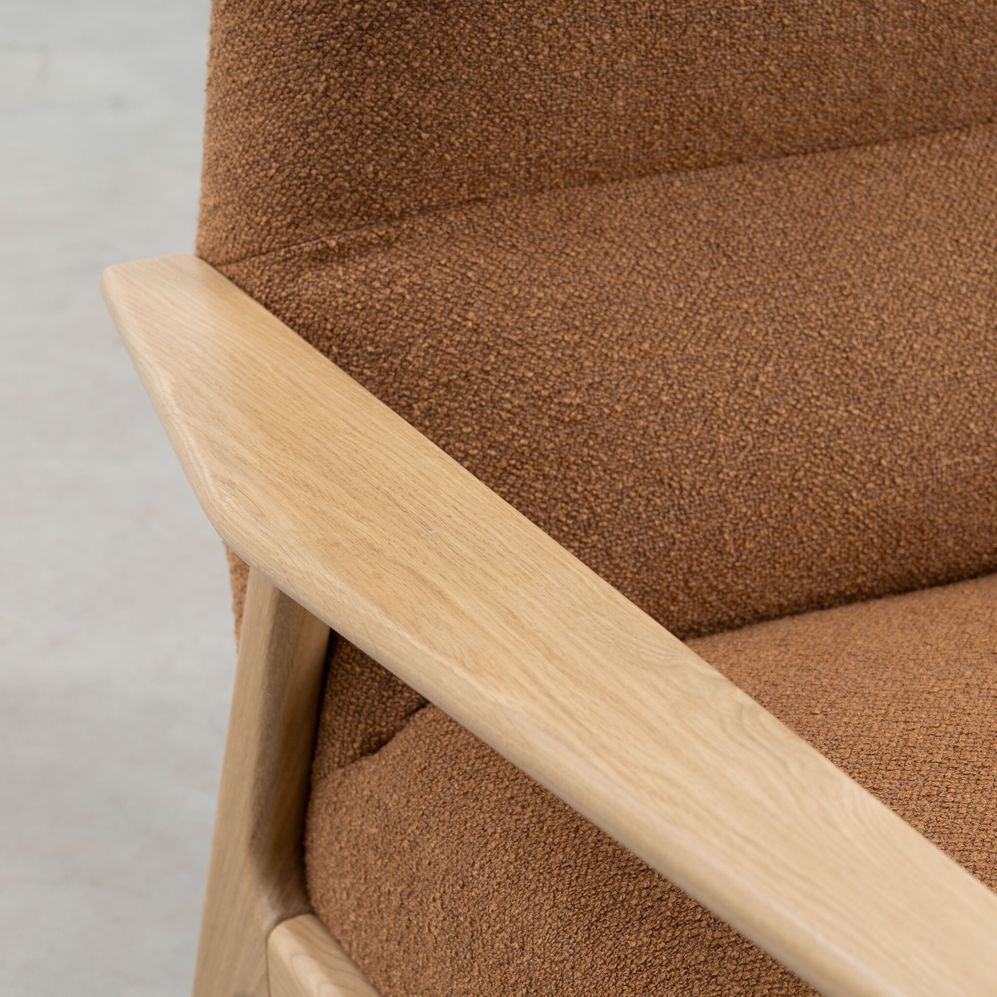 Karl is uitgevoerd met een eiken frame en kussens in Heather stof, beschikbaar in vier stijlvolle kleuren die perfect passen bij verschillende interieurstijlen.