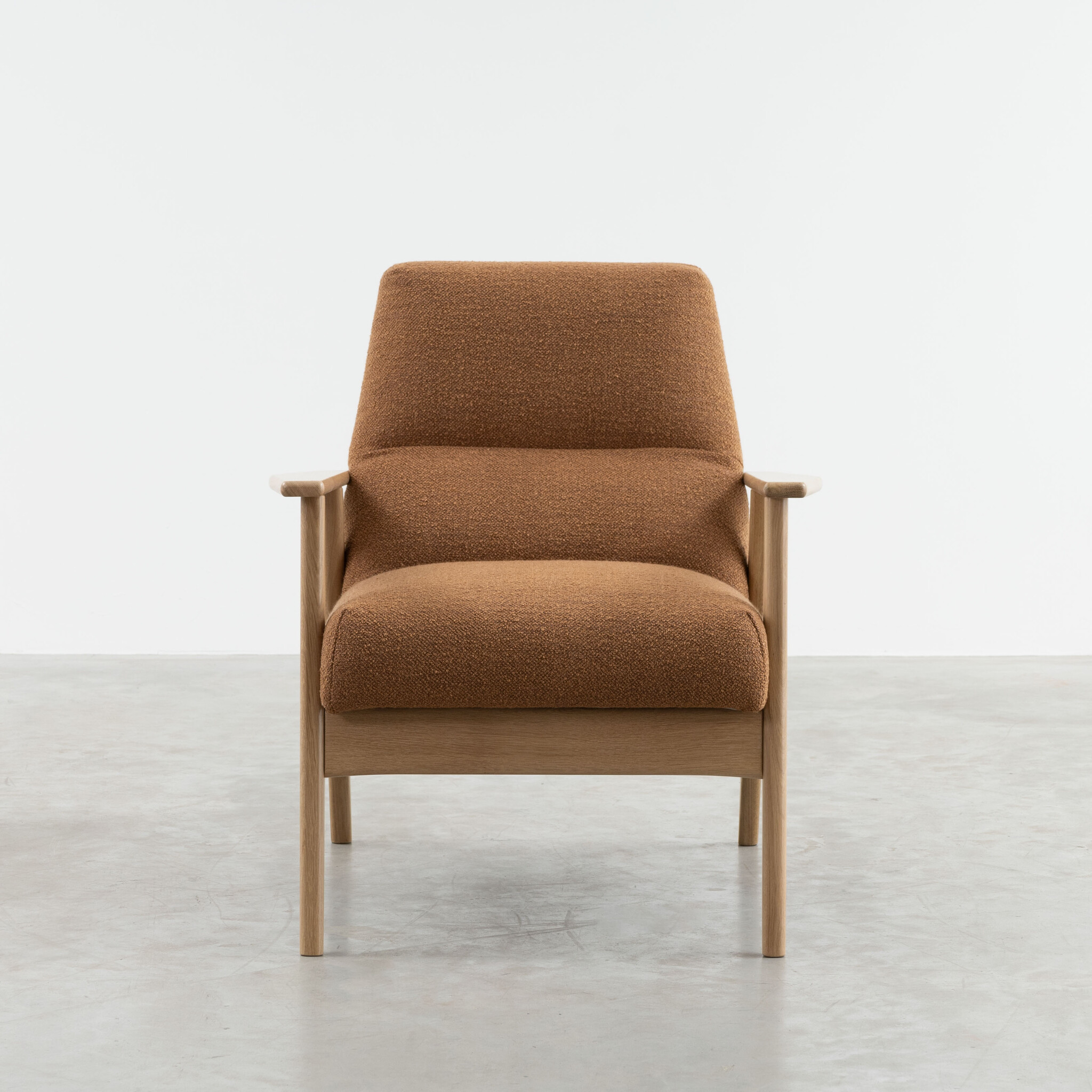 Sav & Økses loungestoel Karl laat zien waarom lage fauteuils nog altijd relevant zijn in hedendaagse interieurs. Een stoel als deze is een tijdloze, comfortabele en aantrekkelijke aanwinst voor de huiskamer, hoe groot of klein je ook woont. Bij Karl wordt de rugleuning naar boven toe smaller, wat mooi combineert met het subtiele frame van massief hout. Dat maakt van Karl een ranke verschijning die álle ruimte biedt voor een ontspannen momentje.