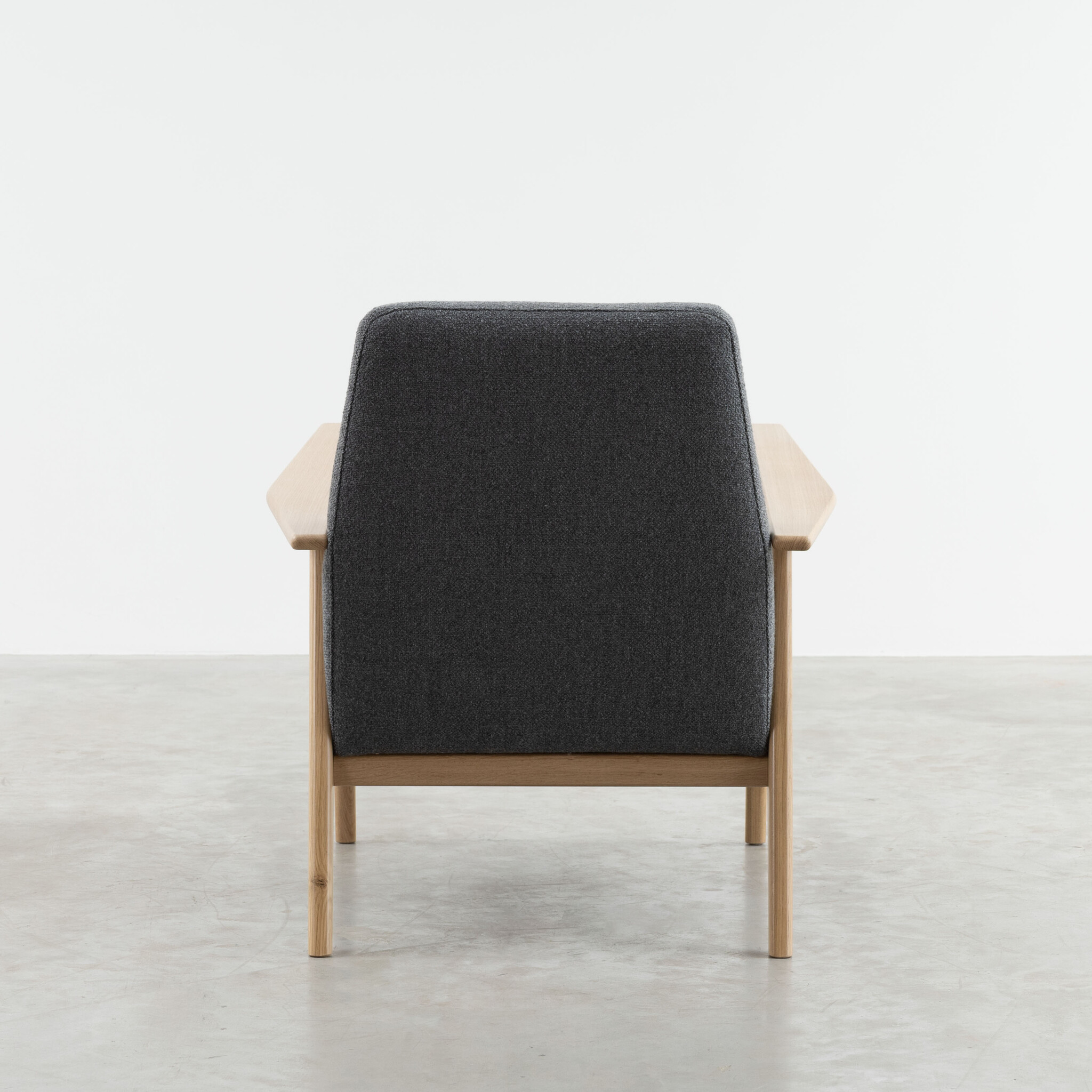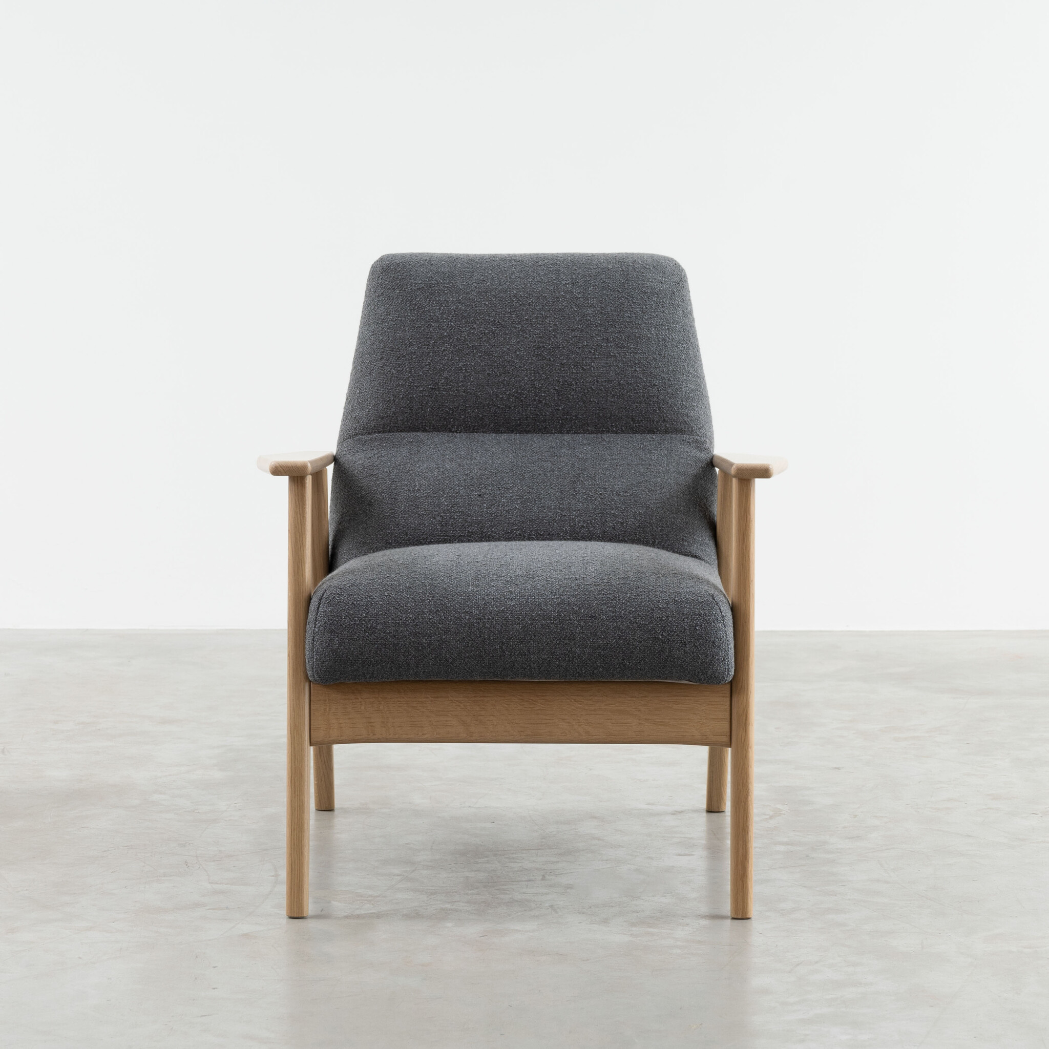 Sav & Økses loungestoel Karl laat zien waarom lage fauteuils nog altijd relevant zijn in hedendaagse interieurs. Een stoel als deze is een tijdloze, comfortabele en aantrekkelijke aanwinst voor de huiskamer, hoe groot of klein je ook woont. Bij Karl wordt de rugleuning naar boven toe smaller, wat mooi combineert met het subtiele frame van massief hout. Dat maakt van Karl een ranke verschijning die álle ruimte biedt voor een ontspannen momentje.