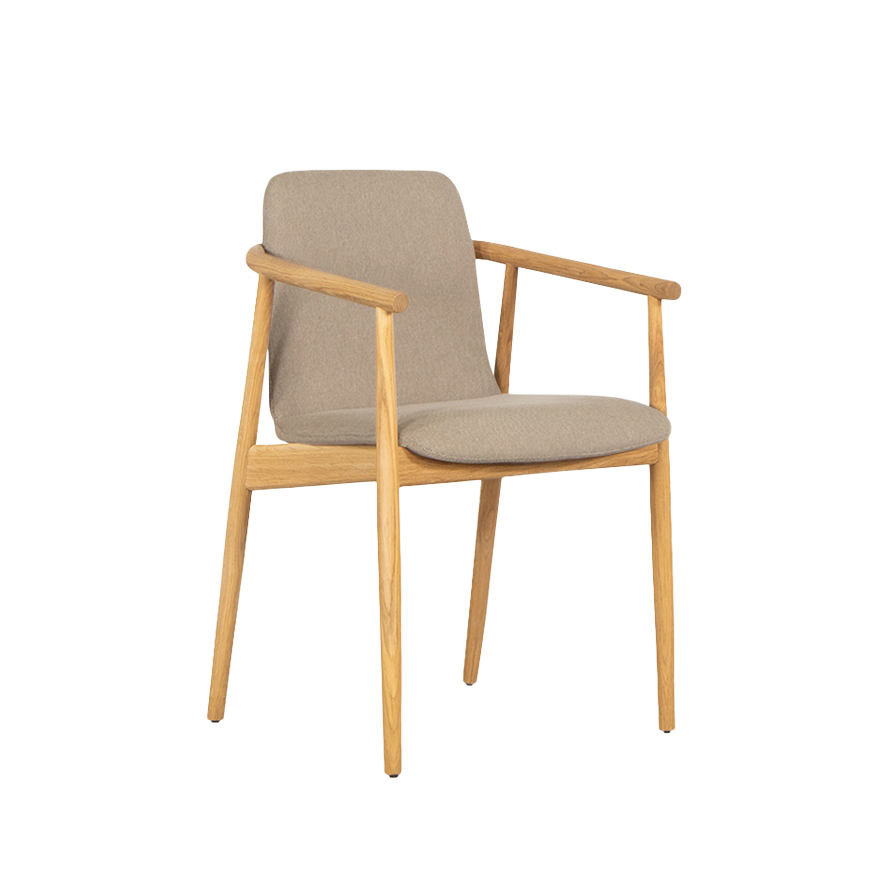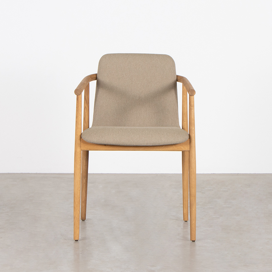 De houten zitting en rug vormen één vloeiend houten geheel wat wordt gedragen door het frame. Het frame is een bijzondere combinatie van gebogen én rechte lijnen. Een combinatie die sterk en sierlijk oogt en een lust is om op te zitten. De Mirja is gemaakt van massief eikenhout. Het hout is afgewerkt met een olie. De stoel is leverbaar in vier kleuren Olbia stof.