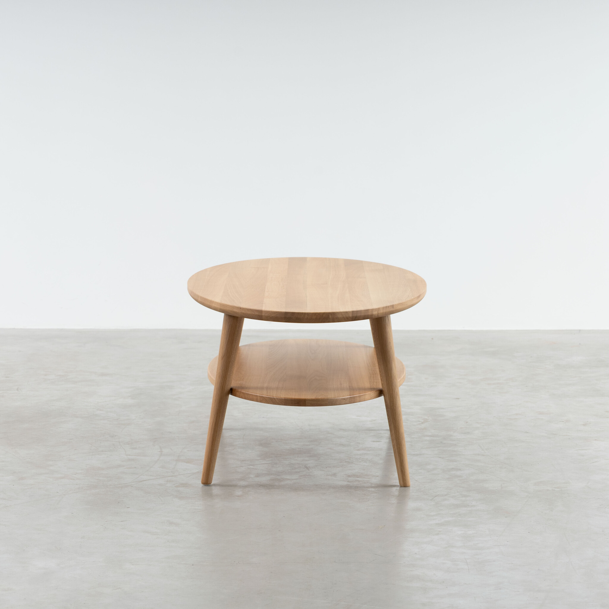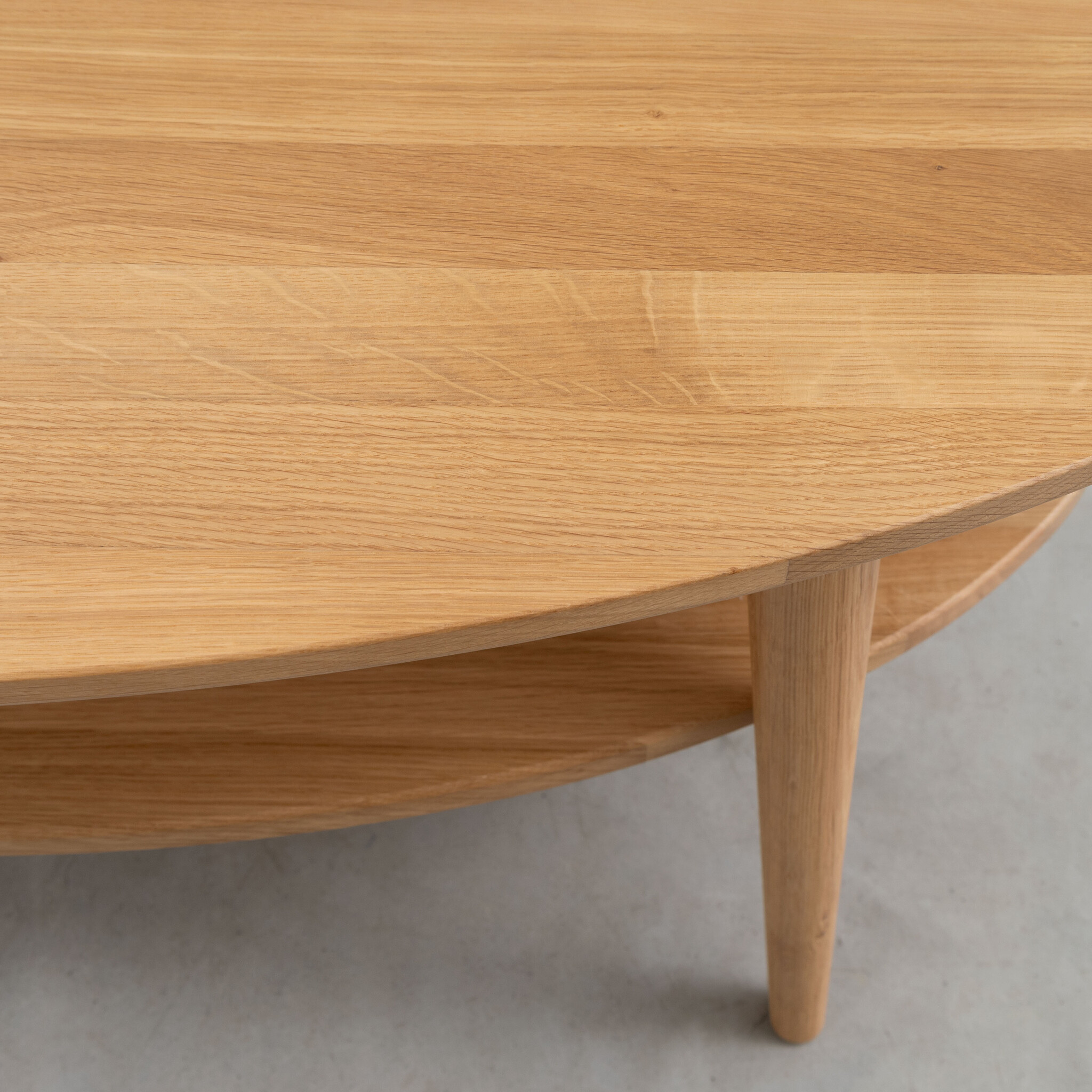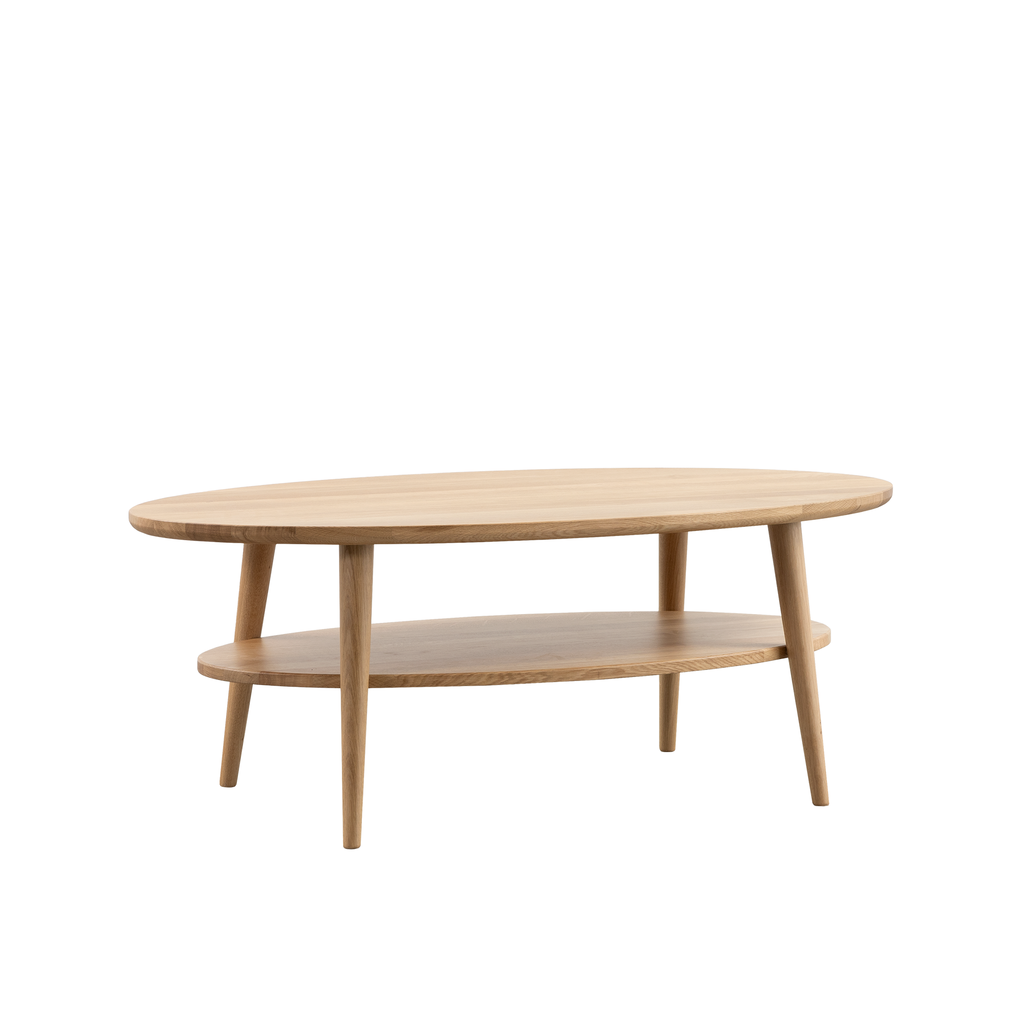 Salontafel Ove onderscheidt zich met zijn twee ovale bladen, waardoor je genoeg ruimte hebt voor drankjes en snacks, terwijl je afstandsbediening, tijdschriften of boeken altijd binnen handbereik blijven. De schuingeplaatste, taps toelopende poten geven deze ovale houten salontafel een speels en luchtig karakter. Dit Scandinavische design, vervaardigd uit massief eikenhout, straalt warmte en natuurlijke elegantie uit. Dankzij de slimme vormgeving past Ove perfect in zowel moderne als minimalistische interieurs. Een stijlvolle én praktische keuze voor elke woonkamer!