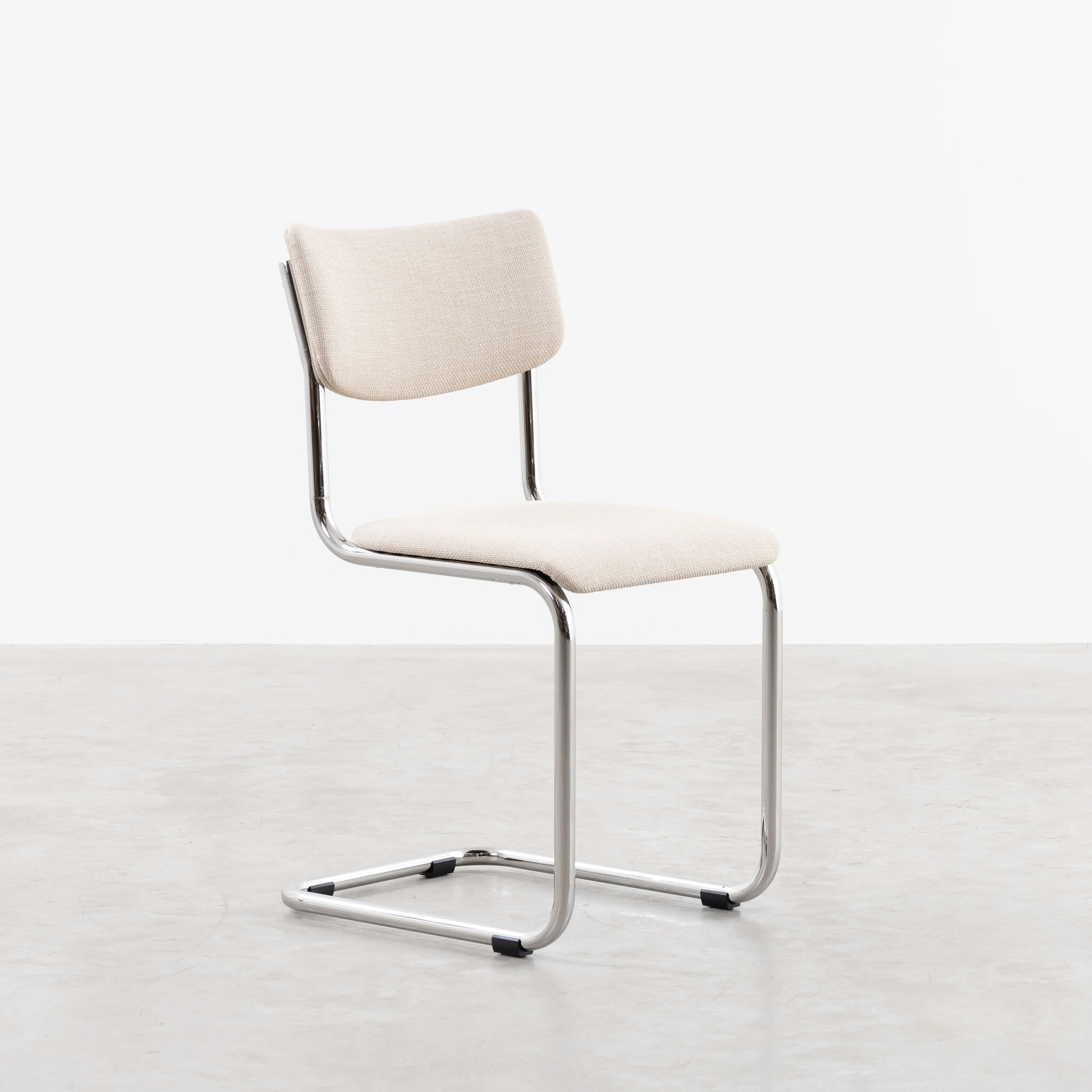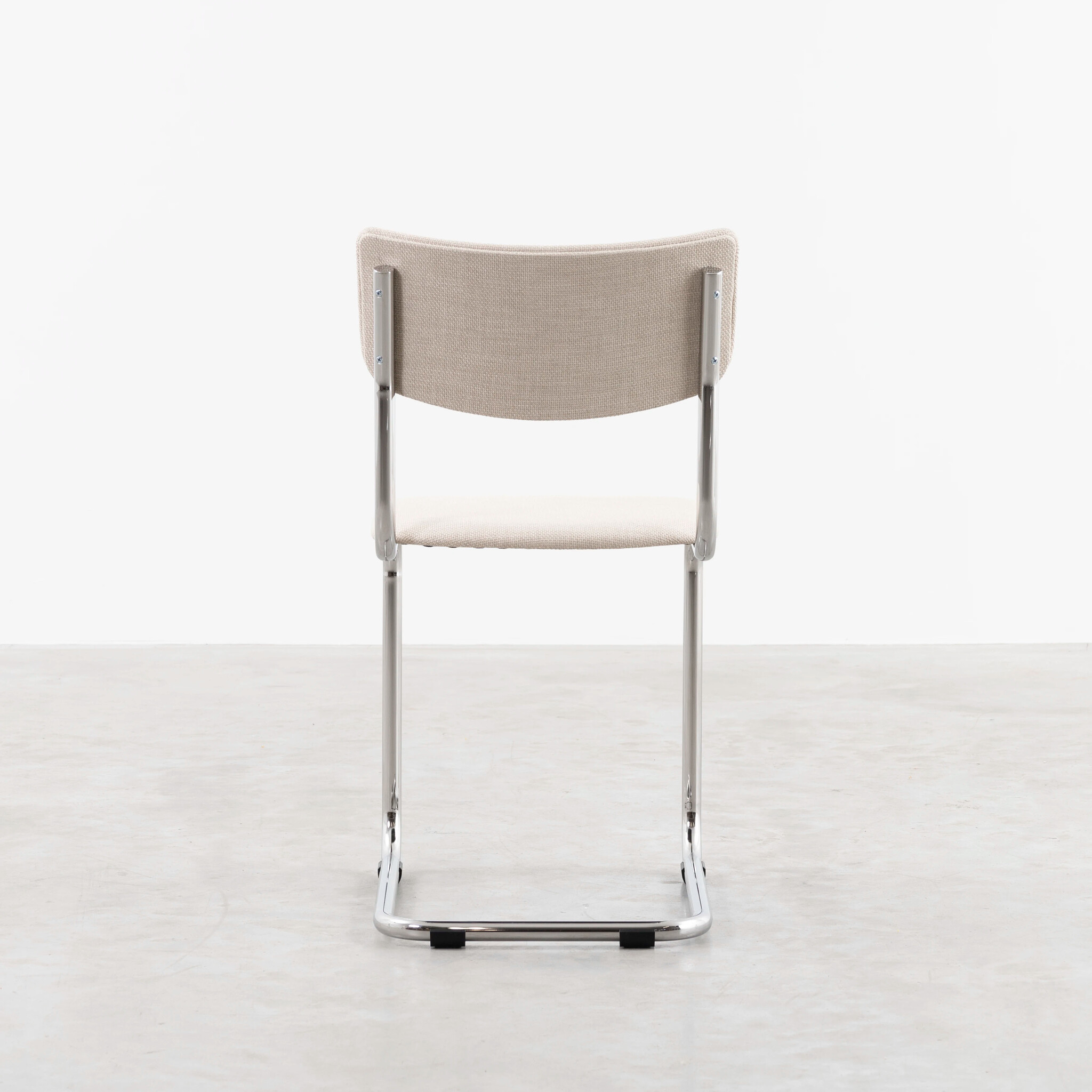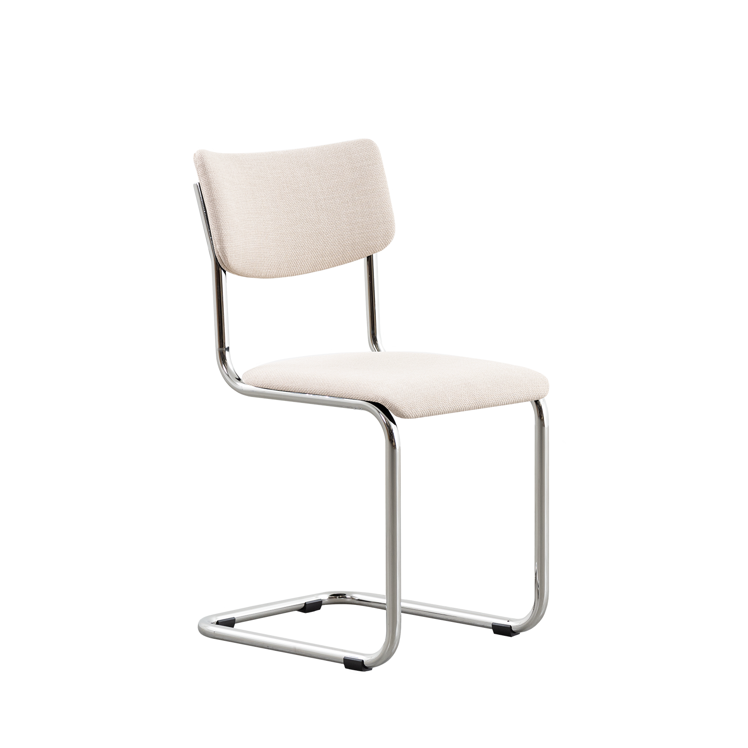 De Purmer is een buisframe sledestoel. Geïnspireerd op de Avant Garde stoelen uit de jaren ’30. De stoel heeft een moderne industriële uitstraling. Met daarbij een goede zit, is het een ideale eetkamerstoel. Het buisframe frame heeft rechte hoeken en loopt van de slede tot en met de rugleuning evenwijdig aan elkaar. Door de knik in het buisframe staat de rugleuning licht gekanteld. Dit geeft de juiste ondersteuning om heerlijk te tafelen. De optionele bakelieten armleuningen zorgen ervoor dat ook je armen ondersteuning krijgen. Met zijn degelijke kwaliteit is De Purmer geschikt voor zowel horeca, zakelijk als particulier gebruik.