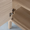 De deurtjes van deze kast zijn greeploos, je opent ze eenvoudig met een klein duwtje (push-to-open). De kast is gemaakt van massief hout, naar keuze in walnoot of eiken. De boekenkast komt onmiskenbaar uit de Rikke-familie. De hoeken van het meubel zijn aan de binnenzijde afgerond en vormen een geheel met de staanders.