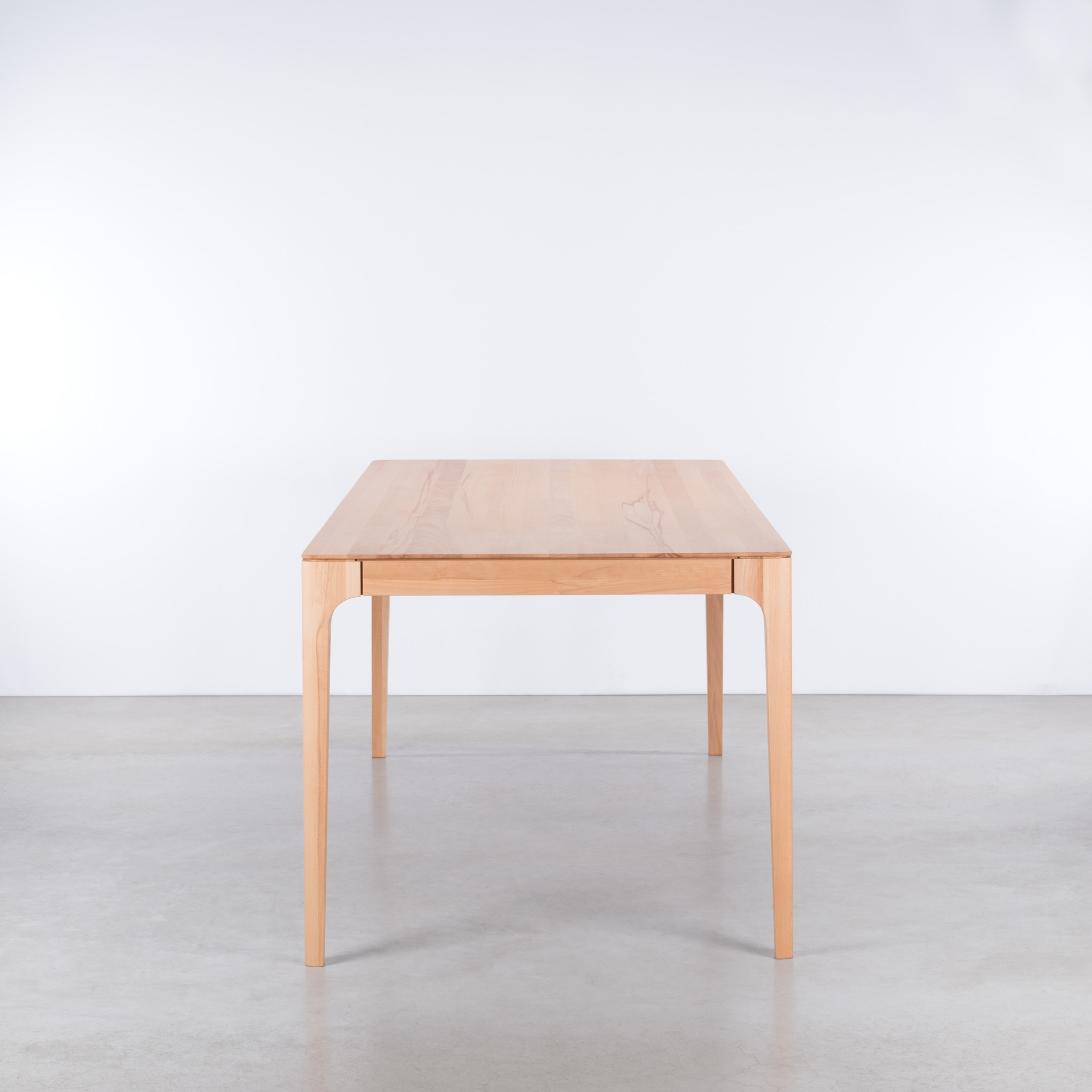 De Rikke is een massief houten tafel met een blad van hout of Fenix. Het ontwerp combineert zachte rondingen met een lichte, open uitstraling. De hoekgeplaatste poten zorgen voor optimaal zitcomfort en een ruimtelijk gevoel, zelfs bij compactere afmetingen. Dankzij de subtiele overgang tussen poot en blad en de smalle tussenruimtes blijft het hout mooi werken en komt het ontwerp volledig tot zijn recht.