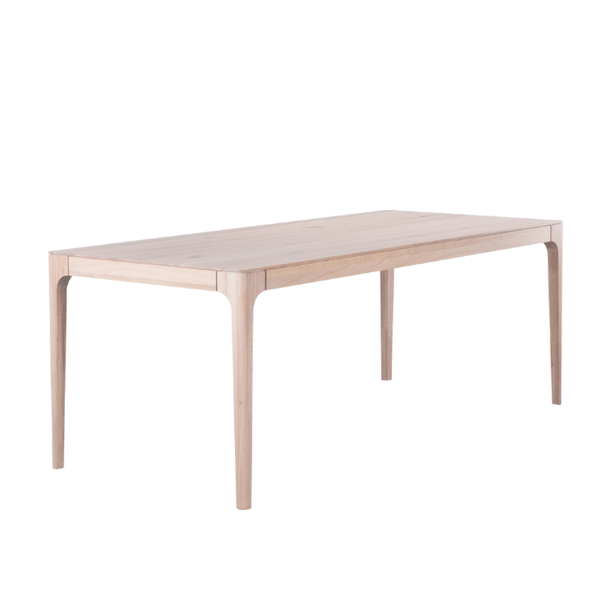 De Rikke is een massief houten tafel met een blad van hout of Fenix. Het ontwerp combineert zachte rondingen met een lichte, open uitstraling. De hoekgeplaatste poten zorgen voor optimaal zitcomfort en een ruimtelijk gevoel, zelfs bij compactere afmetingen. Dankzij de subtiele overgang tussen poot en blad en de smalle tussenruimtes blijft het hout mooi werken en komt het ontwerp volledig tot zijn recht.