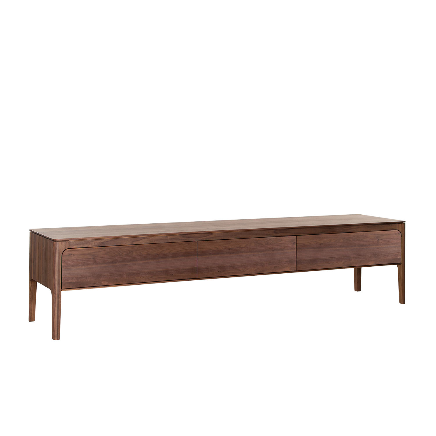 Ben jij op zoek naar een bijzonder walnoten TV-meubel? Het Rikke TV-meubel is een massief houten TV-meubel, met een Scandinavisch ontwerp. Dit massief houten meubel heeft ronde vormen en een lichte uitstraling. De poten lopen in één subtiele vloeiende beweging door.