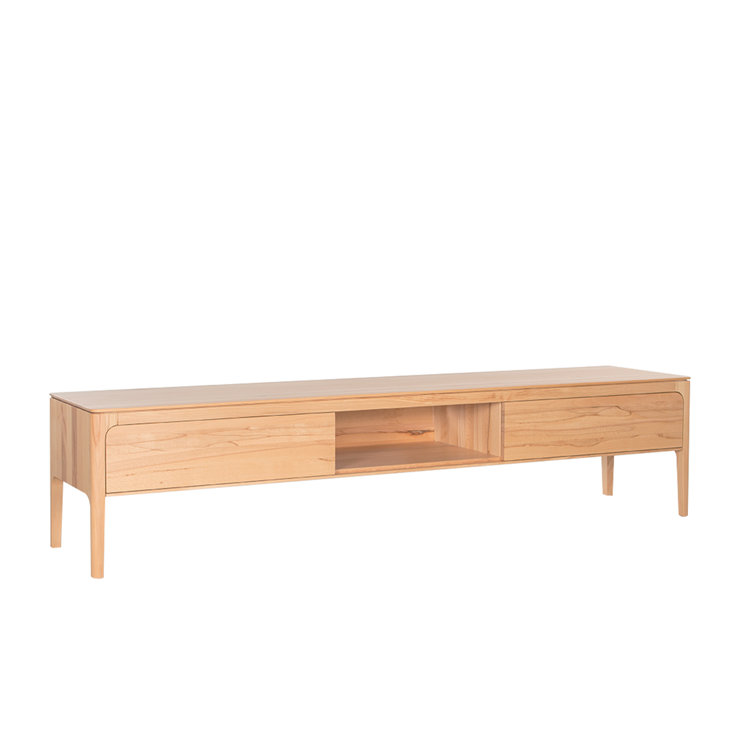 Ben jij op zoek naar een bijzonder beuken TV-meubel? Het Rikke TV-meubel is een massief houten TV-meubel, met een Scandinavisch ontwerp. Dit massief houten meubel heeft ronde vormen en een lichte uitstraling. De poten lopen in één subtiele vloeiende beweging door.