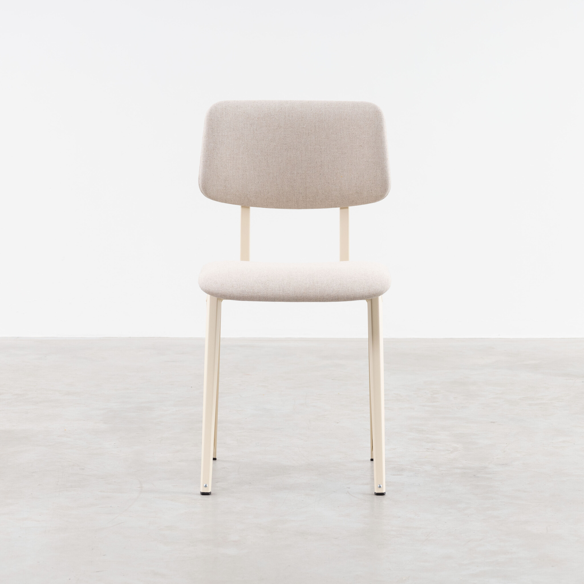Materiaal: frame gemaakt van gevouwen plaatstaal. Zitting en rugleuning gestoffeerd.