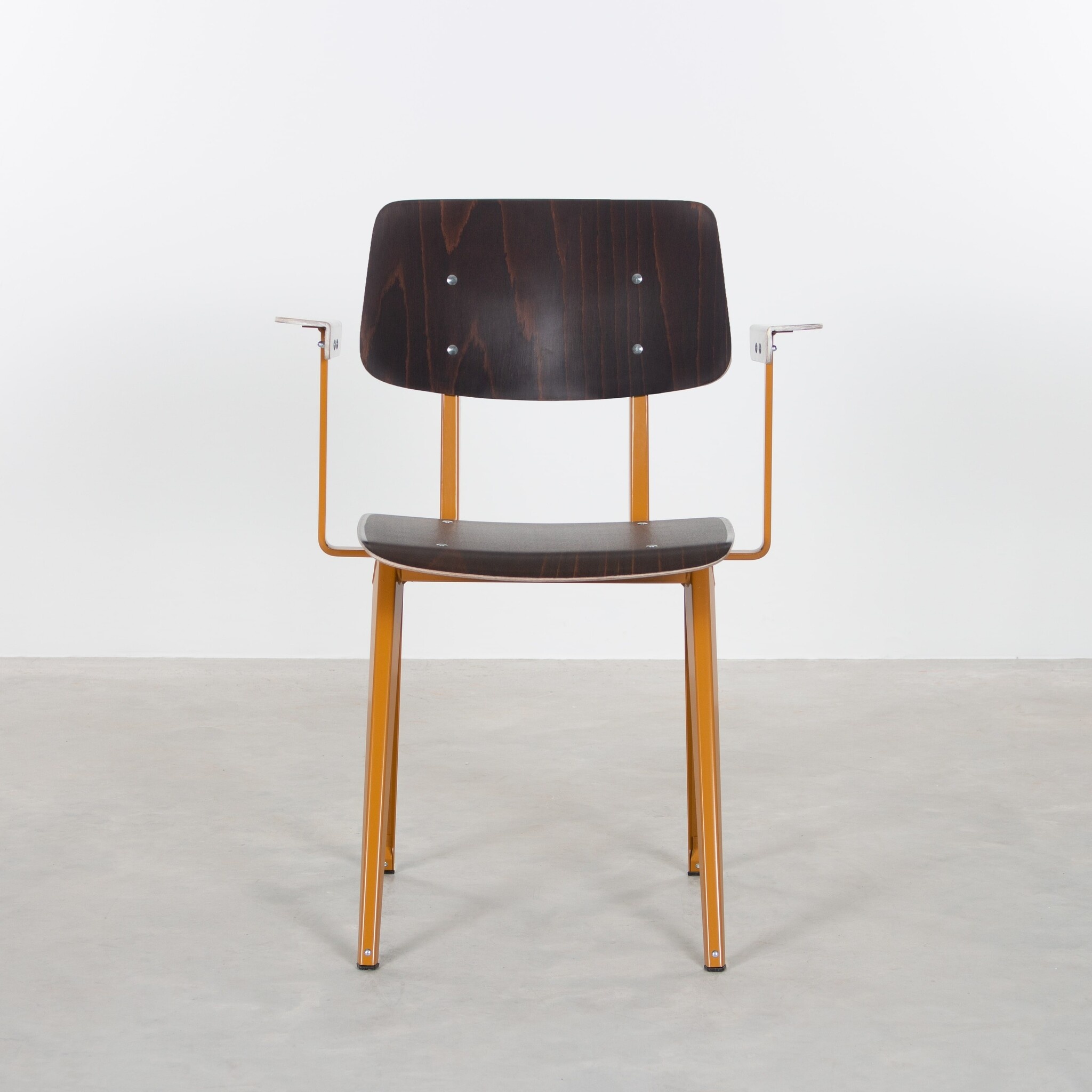 De stoel werd eind jaren ’50, begin jaren ’60 ontworpen en geproduceerd door Galvanitas in Oosterhout. In plaats van de gebruikelijke buisconstructie, koos de ontwerper voor een frame van geperst plaatstaal. Een zeer solide en tegelijkertijd revolutionair ontwerp voor die tijd. De stoel is speciaal ontworpen voor intensief gebruik in openbare gebouwen zoals scholen, instellingen en kantines.