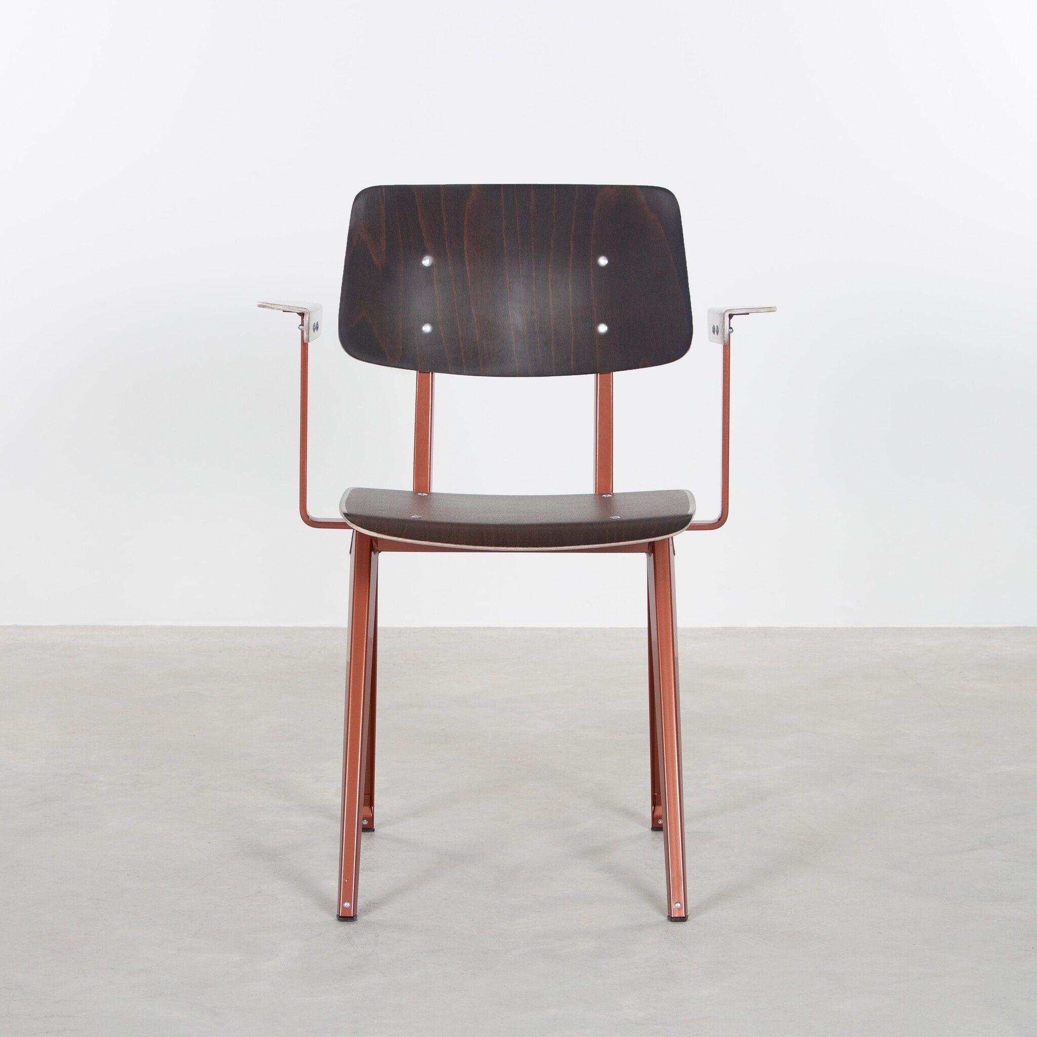 De stoel werd eind jaren ’50, begin jaren ’60 ontworpen en geproduceerd door Galvanitas in Oosterhout. In plaats van de gebruikelijke buisconstructie, koos de ontwerper voor een frame van geperst plaatstaal. Een zeer solide en tegelijkertijd revolutionair ontwerp voor die tijd. De stoel is speciaal ontworpen voor intensief gebruik in openbare gebouwen zoals scholen, instellingen en kantines.