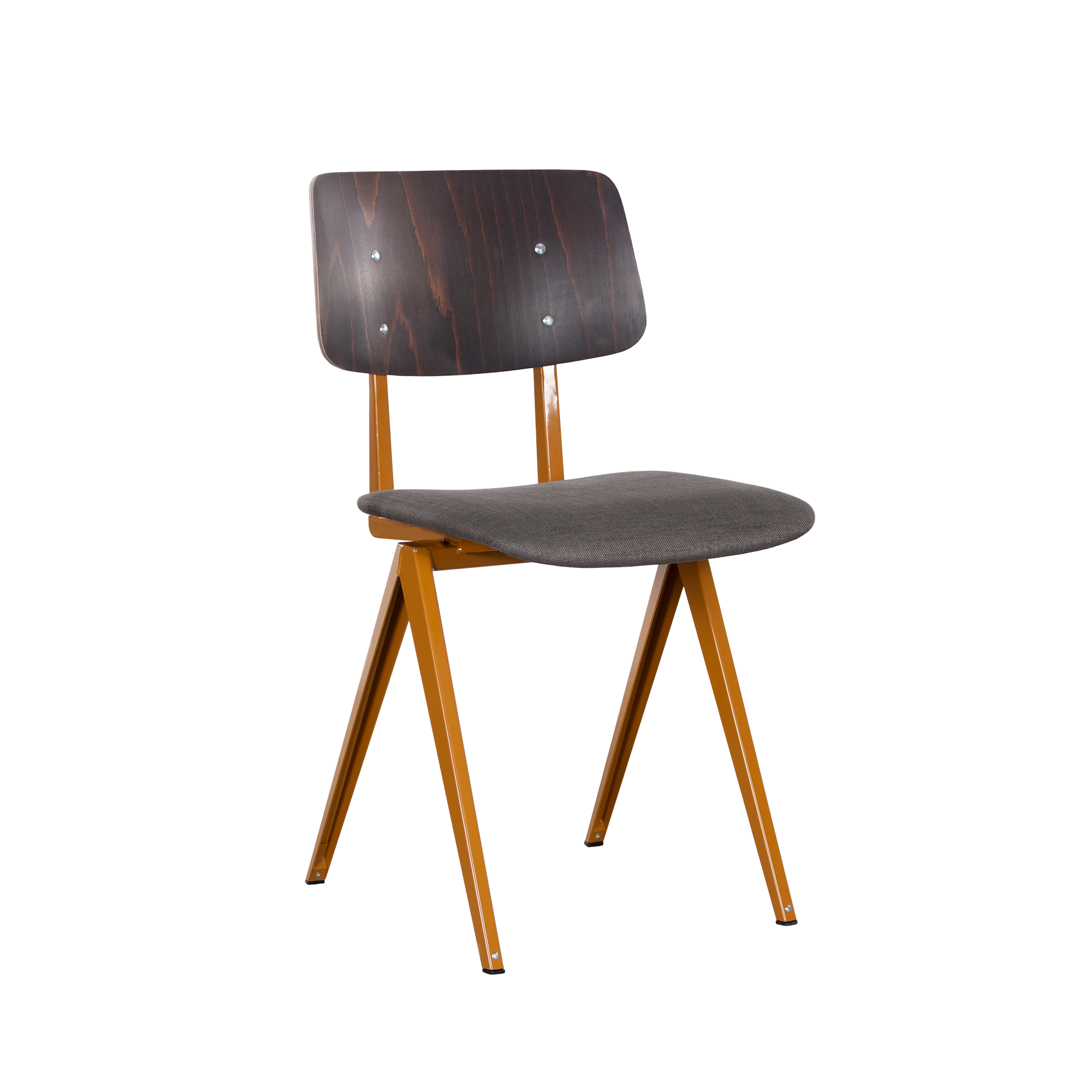 Materiaal: frame gemaakt van gevouwen plaatstaal. Zitting gestoffeerd. Rugleuning gemaakt van kunsthars plywood hout.