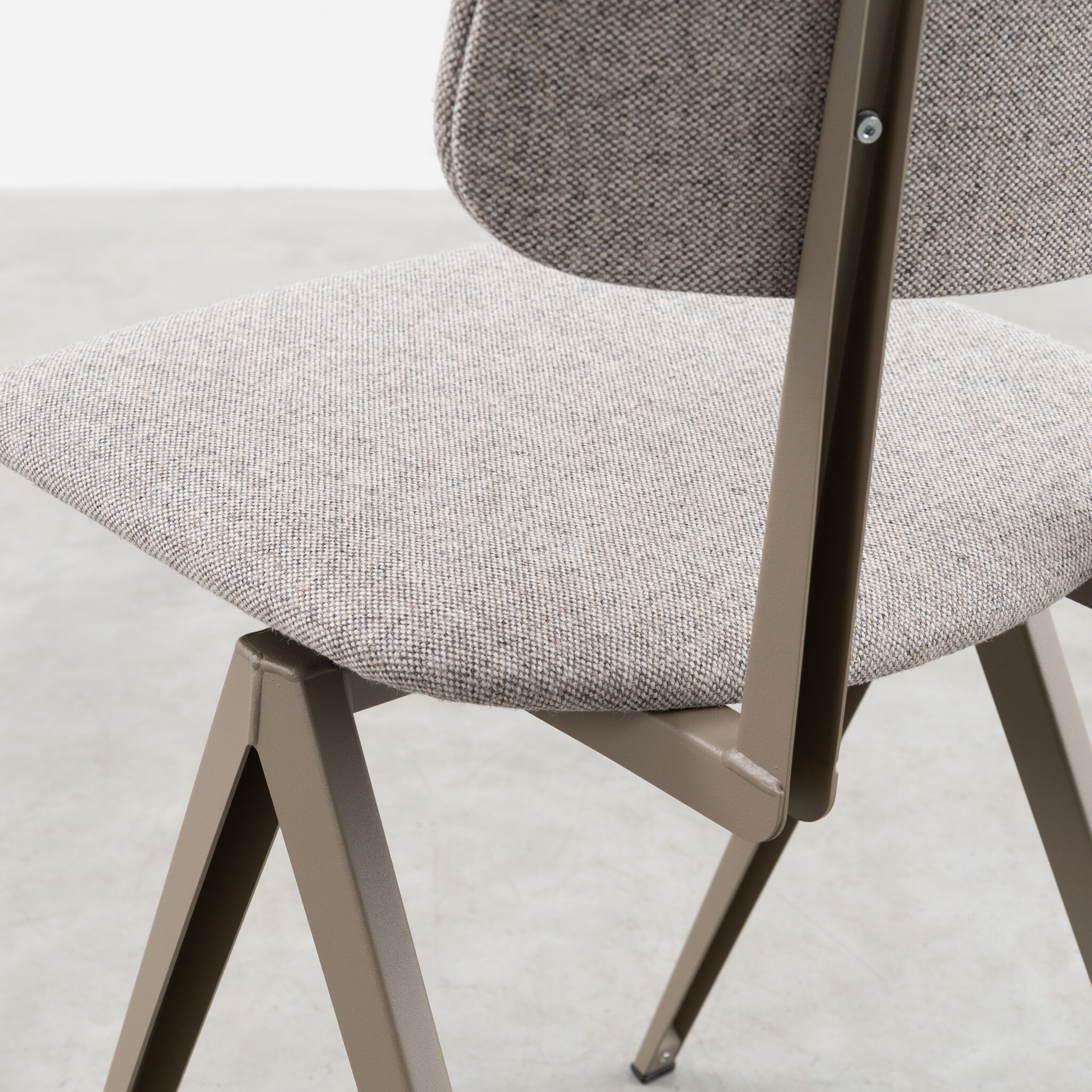Materiaal: frame gemaakt van gevouwen plaatstaal. Zitting en rugleuning gestoffeerd.