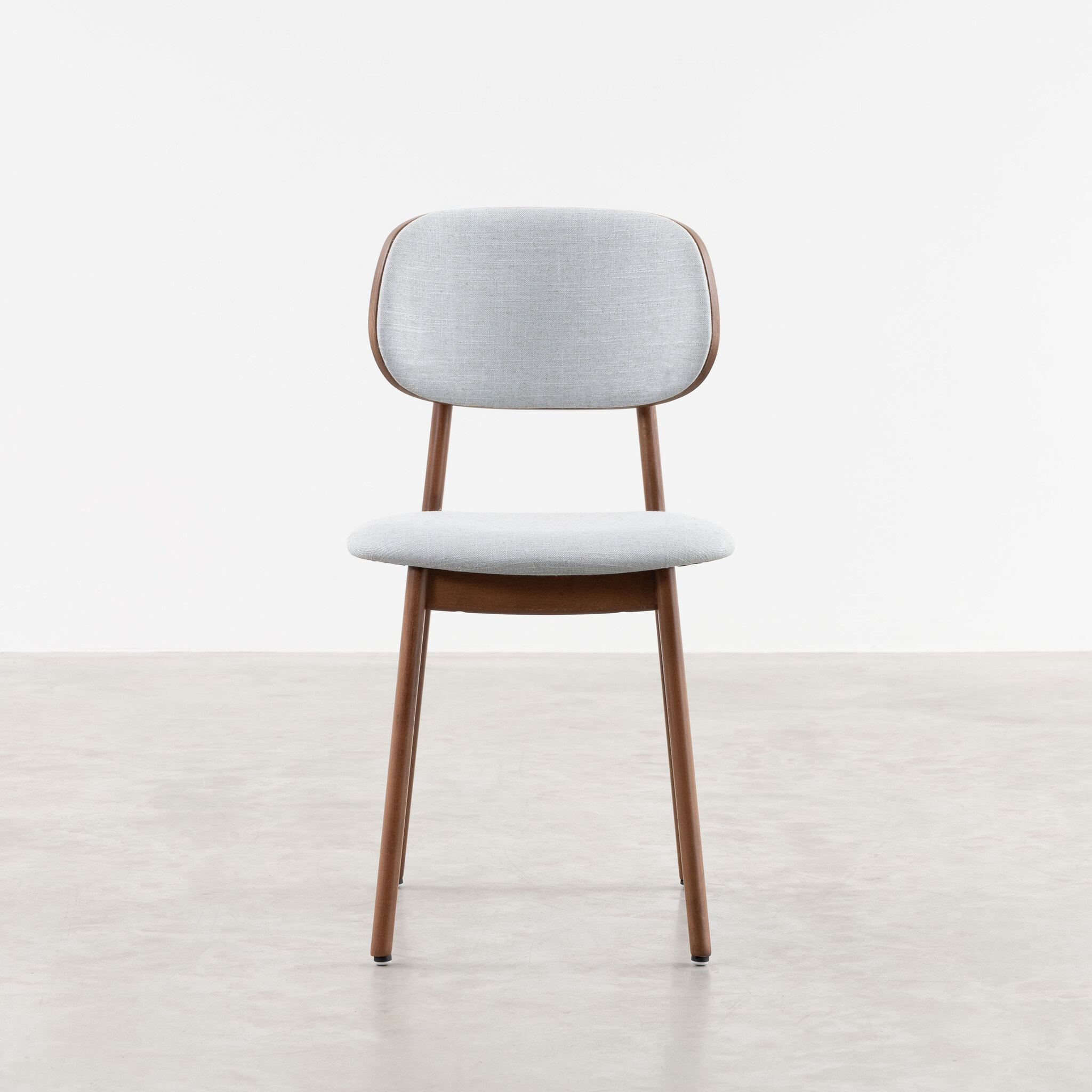 De Sinni is ook verkrijgbaar in volledig hout of met alleen gestoffeerde zitting.