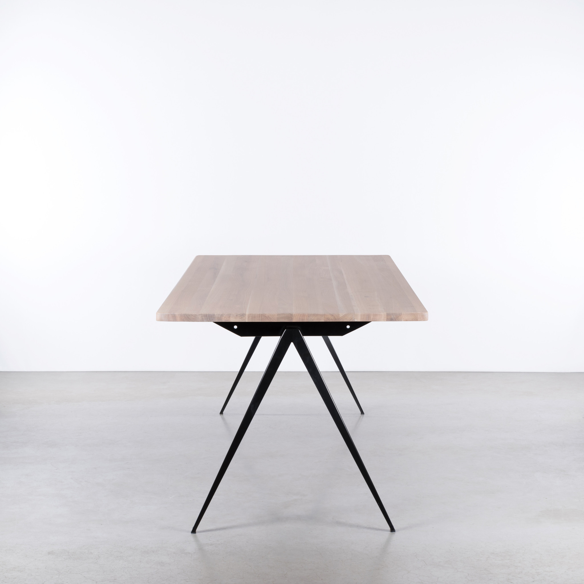 De TD4 tafel is geïnspireerd op de stalen schooltafels uit de jaren ’60. In deze uitvoering gebruik je hem perfect als bureau. Het metalen onderstel en het blad van massief hout geven het ontwerp een duidelijke, functionele uitstraling. De verhouding en constructie zijn gelijk aan het originele ontwerp. Dat zie je terug in de strakke lijnen en de kenmerkende passervormige poten. Het ontwerp oogt eenvoudig, maar zit vol doordachte details.