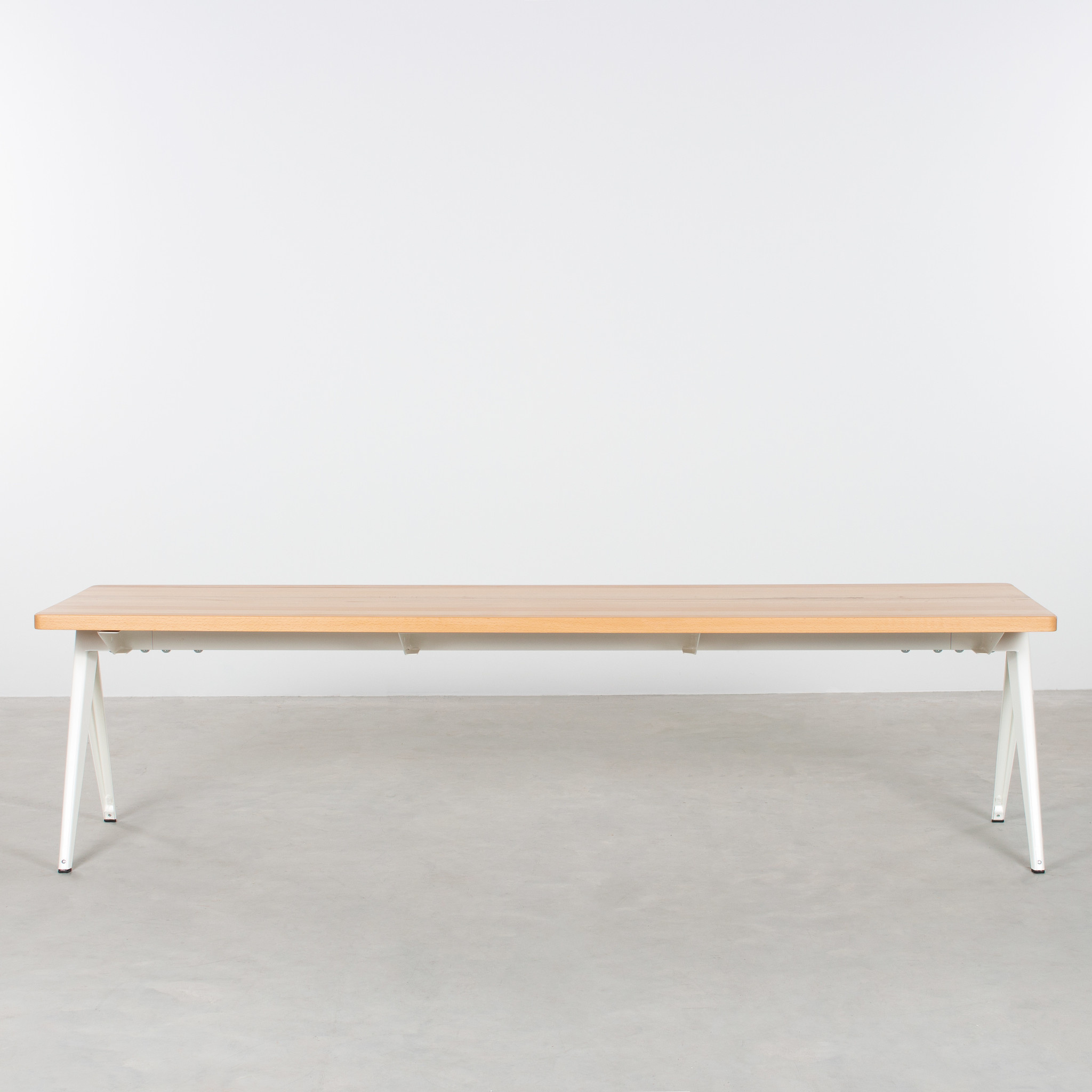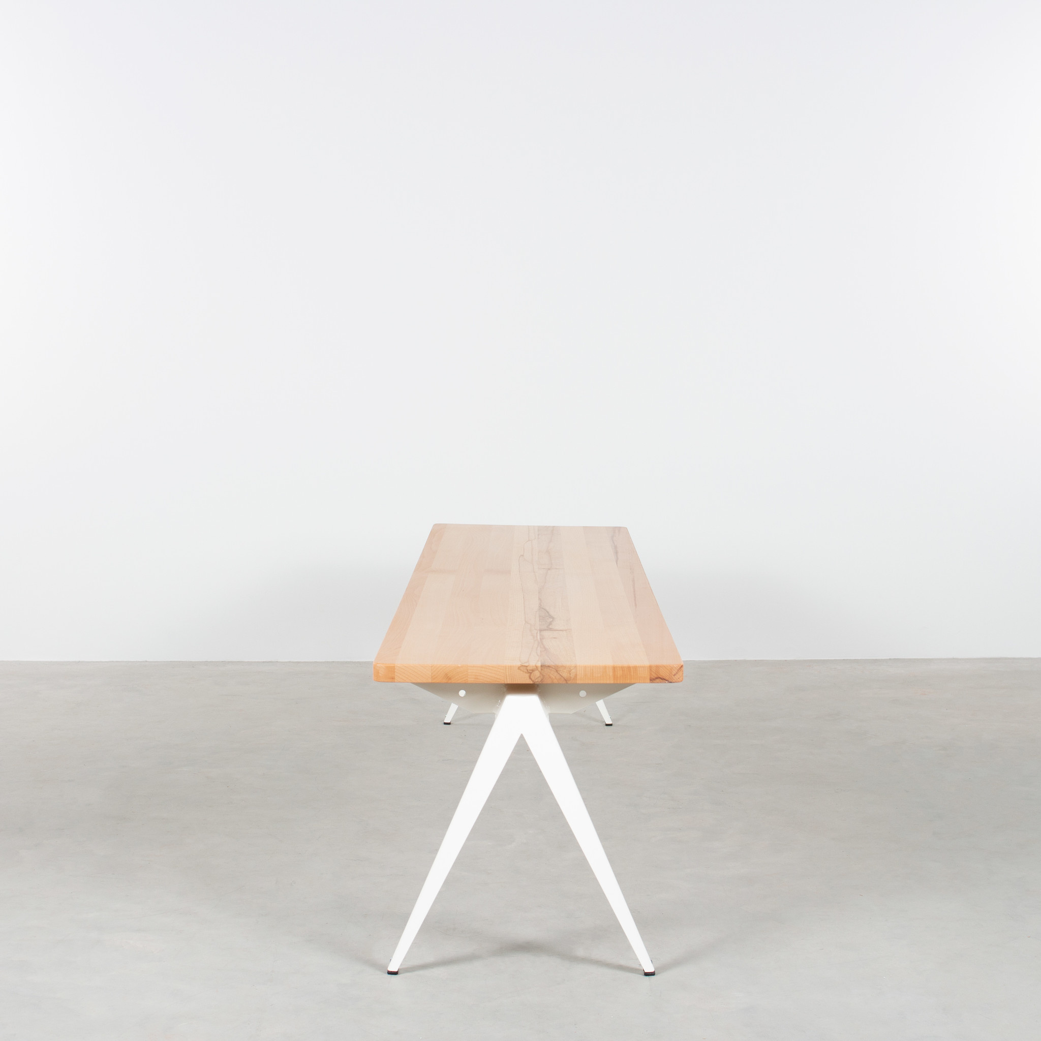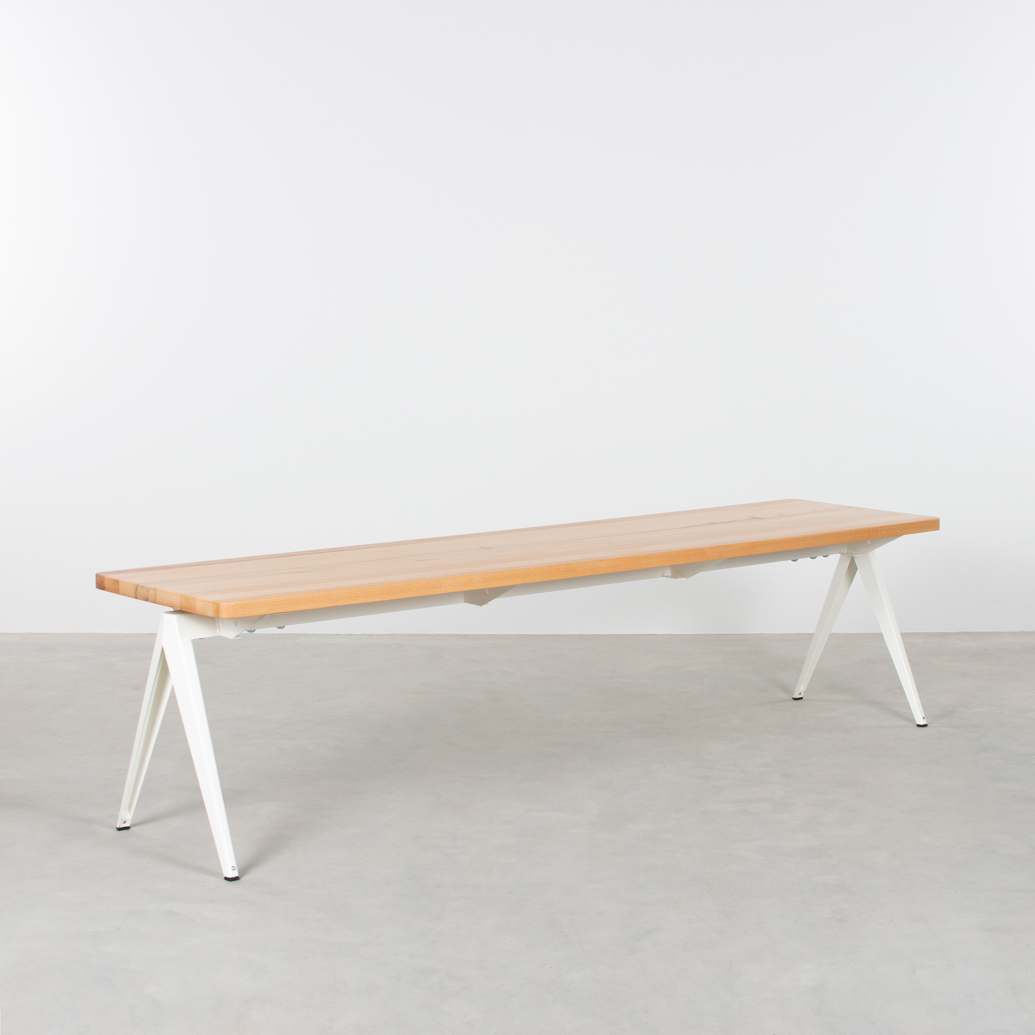 De TD4 eettafelbank is een bijzonder ontwerp. Misschien komt het je bekend voor. het bankje is gebaseerd op de stalen schooltafeltjes uit de jaren ’60. Nu een eettafelbank met een metalen onderstel en een zitvlak van massief hout. Constructief zijn alle elementen gelijk aan het stalen schooltafeltje. Ook het design met de strakke lijnen en karakteristieke passervormige poten zijn overgenomen. Het ontwerp ziet er ogenschijnlijk eenvoudig uit, maar het geoefend oog zal een tal van fraaie en kenmerkende elementen ontdekken. Voor onze gerenommeerde meubelmaker absoluut een uitdaging, maar het resultaat mag er zijn.
