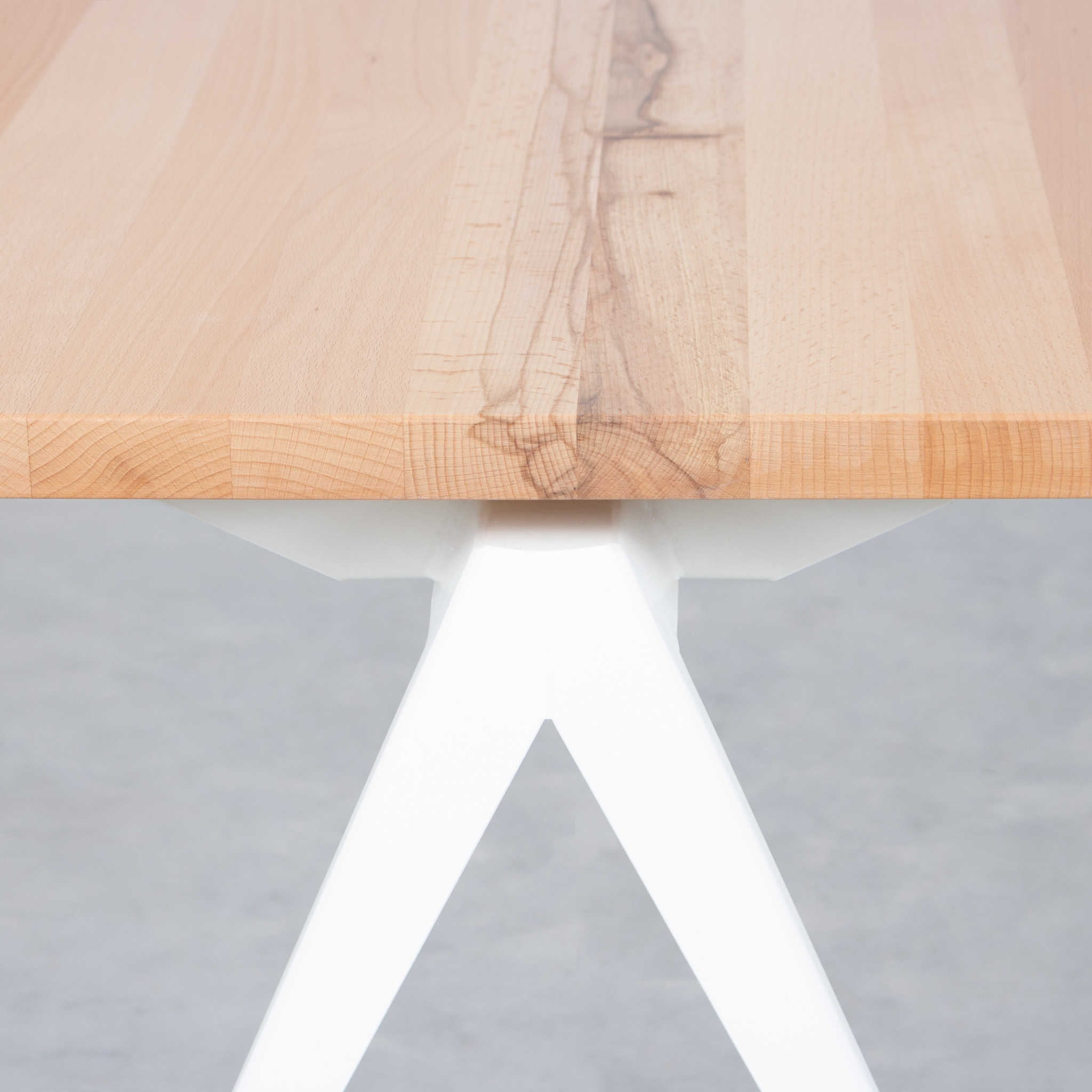 Contructie: De poten van het frame worden tegen de ligger gemonteerd. Het blad wordt door middel van houtschroeven aan het frame bevestigd. Let op: het TD4 tafelblad heeft geen voorgeboorde gaten.
