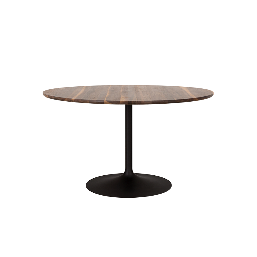 Tafel Tinne heeft een rond blad van massief hout en een slanke trompetvoet. Het ontwerp is modern en rustig, met sterke materialen en een stabiele basis. Het houten blad geeft de tafel een warme uitstraling. De poot is leverbaar in twee kleuren, zodat je de tafel goed kunt laten aansluiten op je interieur.